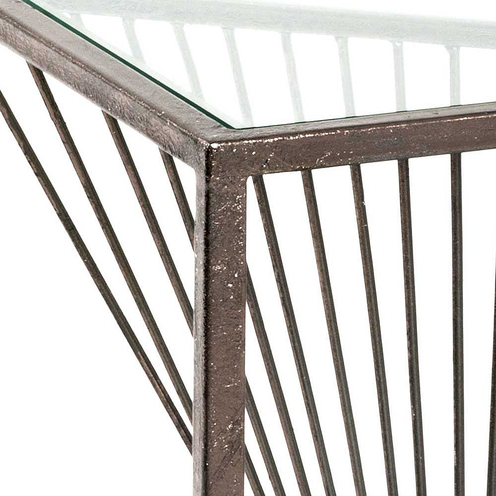 Sofa Beistelltisch mit Glasplatte Stahlgestell in Bronze