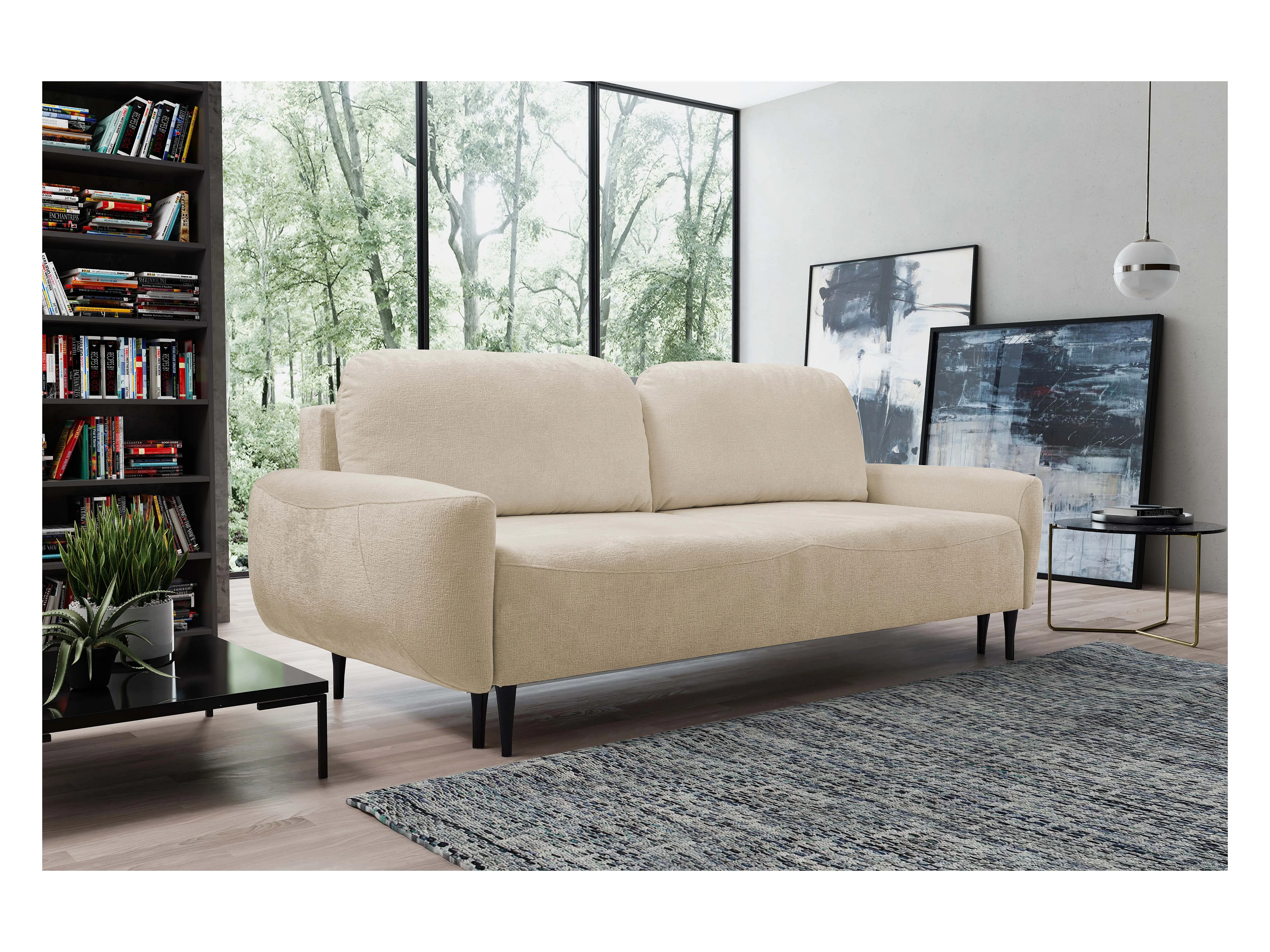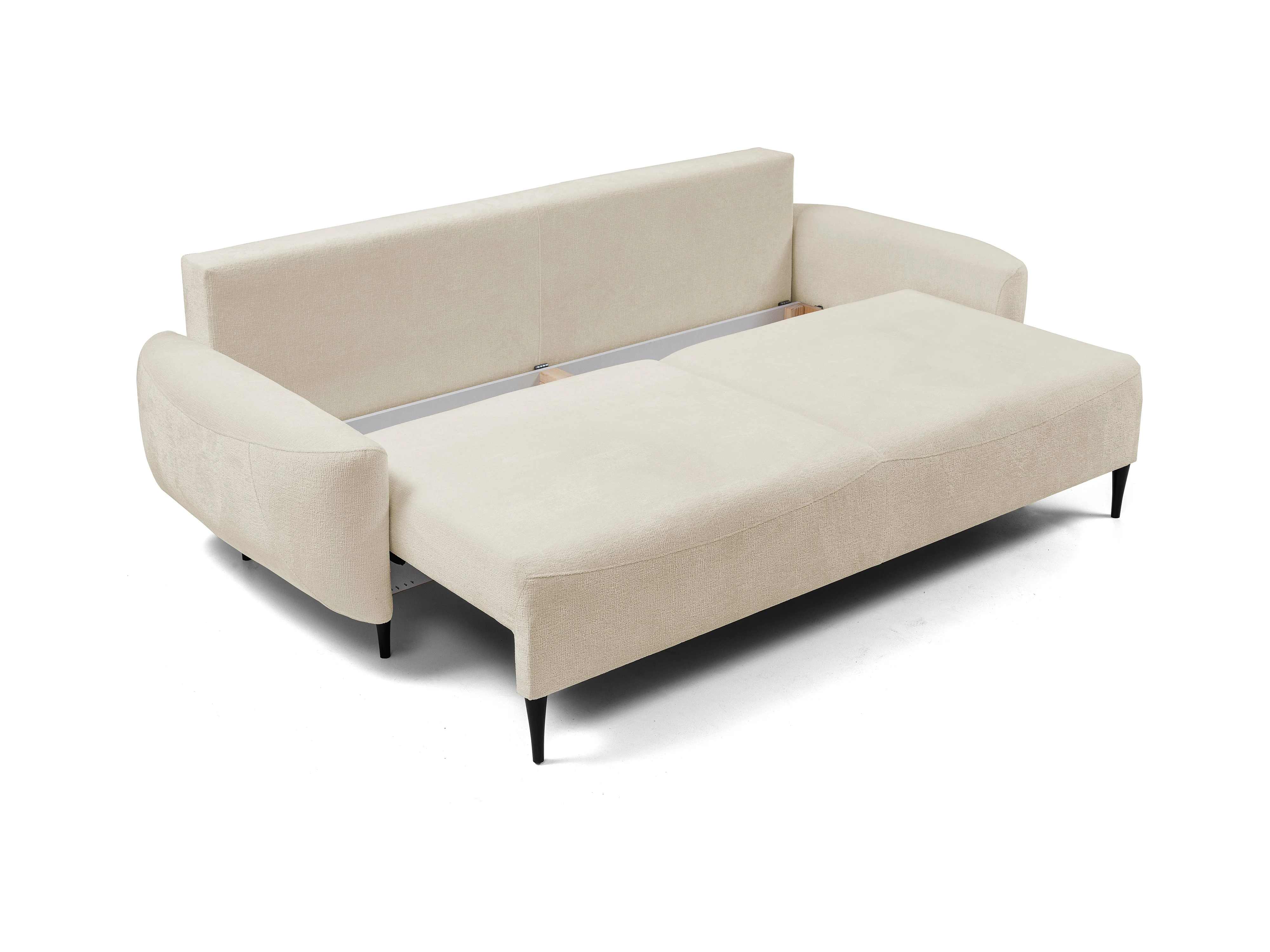 Sofa BOHO - Schlafsofa 140x200cm, Holzfüße, Bettzeugaufbewahrung, PUR-Schaumstoffpolsterung, 244x92x102cm BEIGE