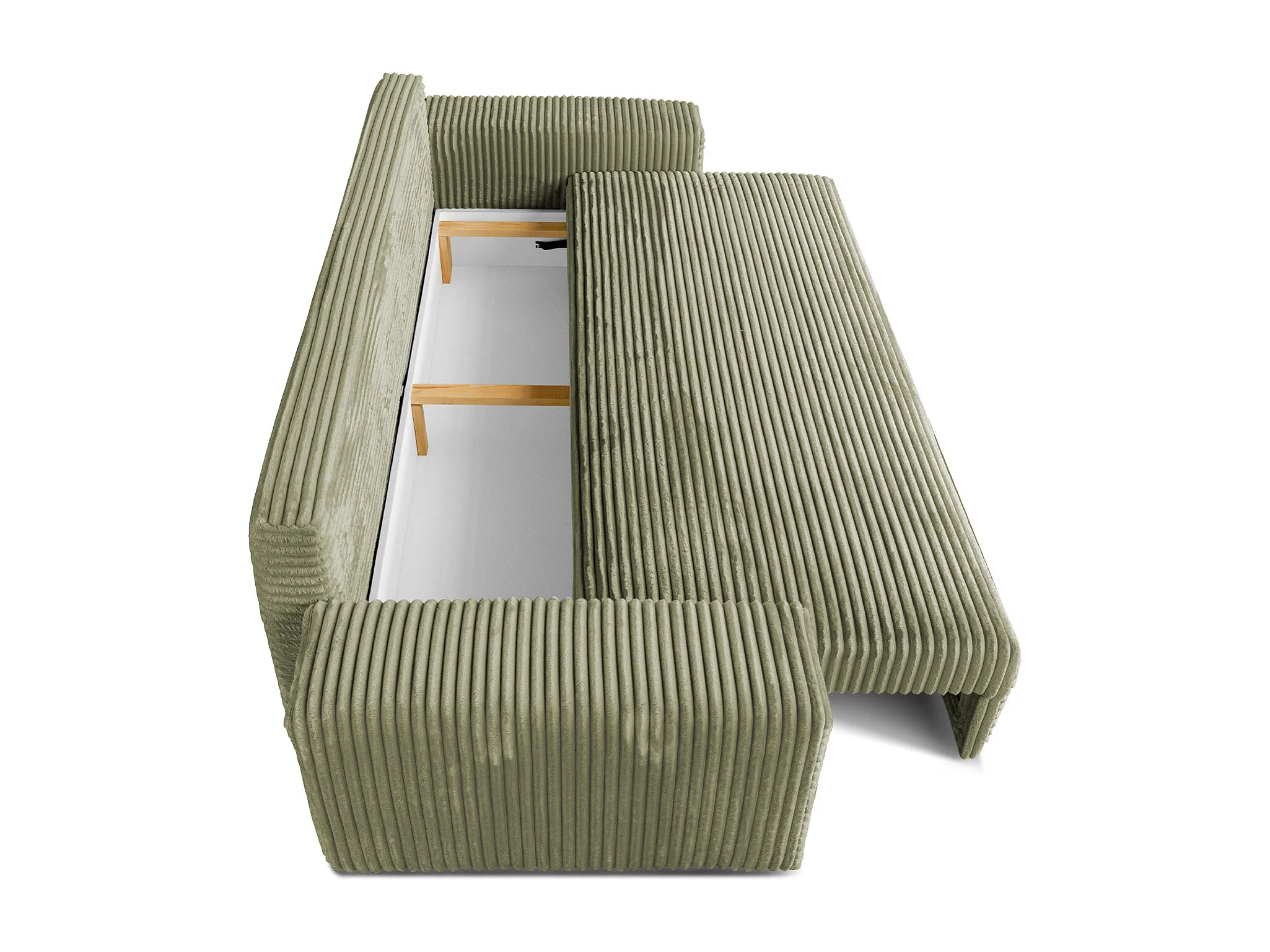 Sofa CORDO by Sofiland - Schlafsofa mit Bettkasten, Cord-Sofa 265x105 cm, Hellgrün 37