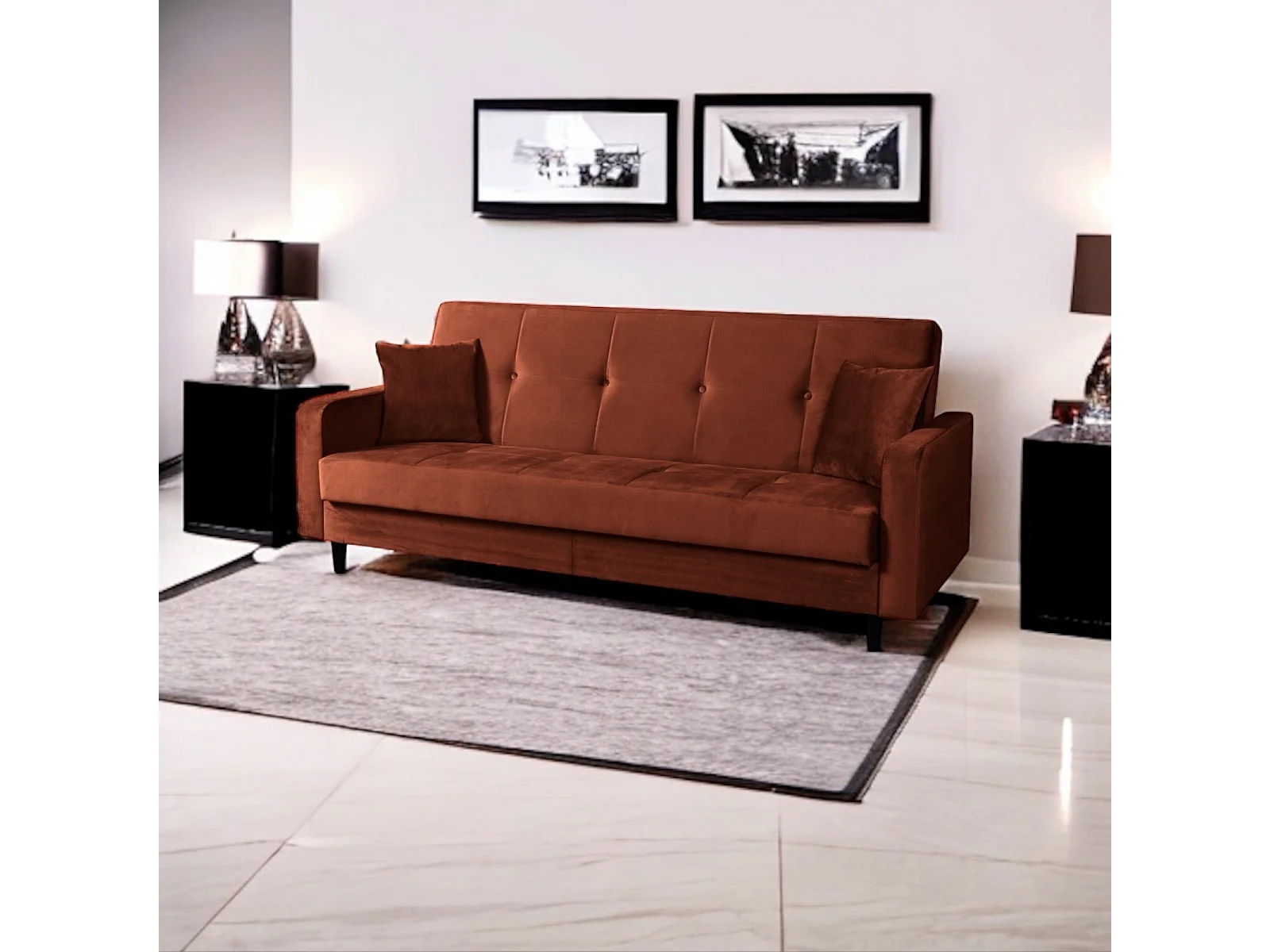 Sofa Luna Schlafsofa im skandinavisches Stil, Couch mit Schlaffunktion und Bettkasten, Polstersofa für Wohnzimmer 213 cm, braun