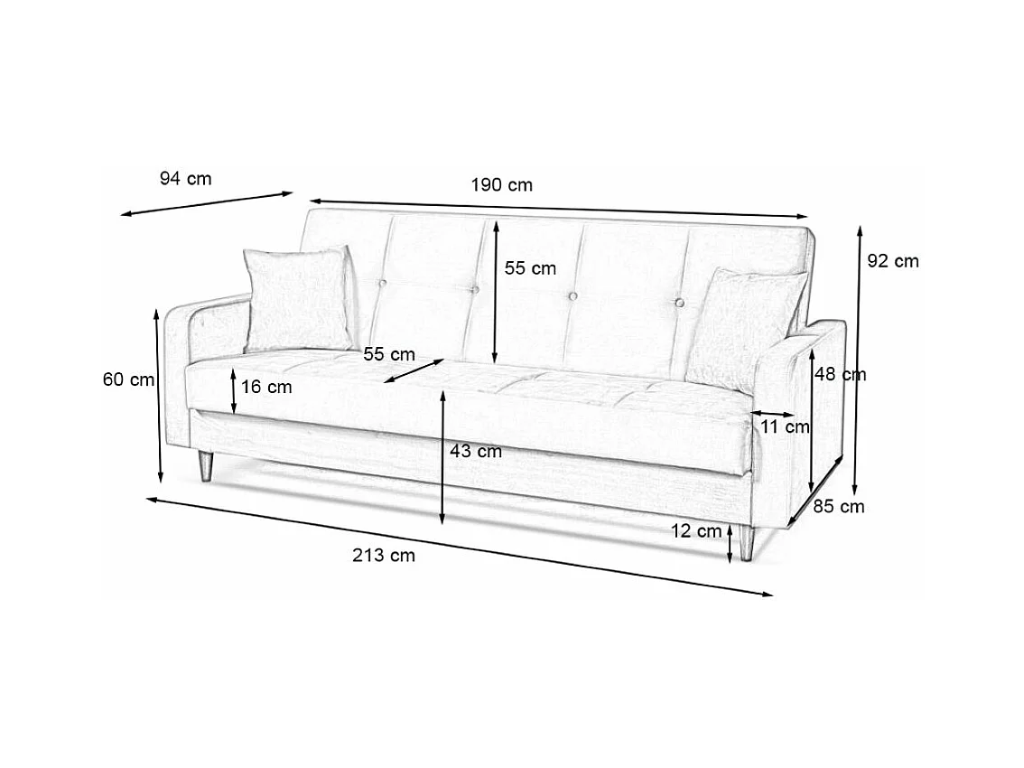 Sofa Luna Schlafsofa im skandinavisches Stil, Couch mit Schlaffunktion und Bettkasten, Polstersofa für Wohnzimmer 213 cm hellgrau