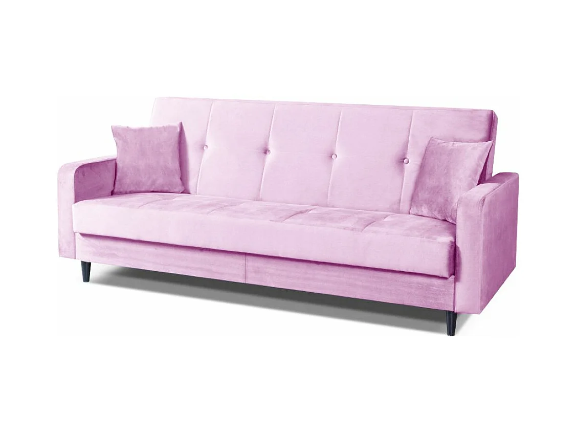 Sofa Luna Schlafsofa im skandinavisches Stil, Couch mit Schlaffunktion und Bettkasten, Polstersofa für Wohnzimmer 213 cm, rosa