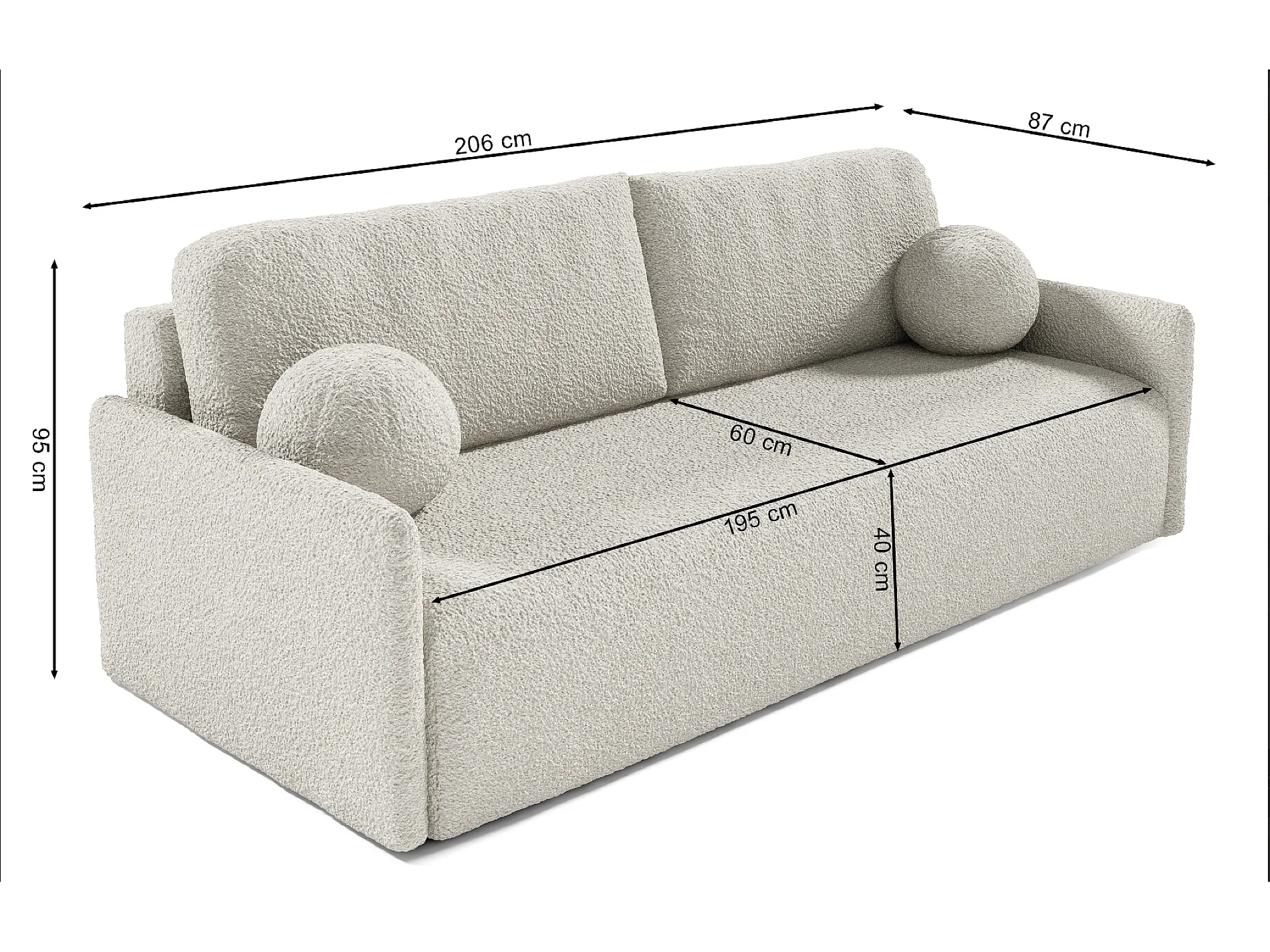 Sofa mit Schlaffunktion, Stauraum - Bouclé-Bezug - creme - GLOVE