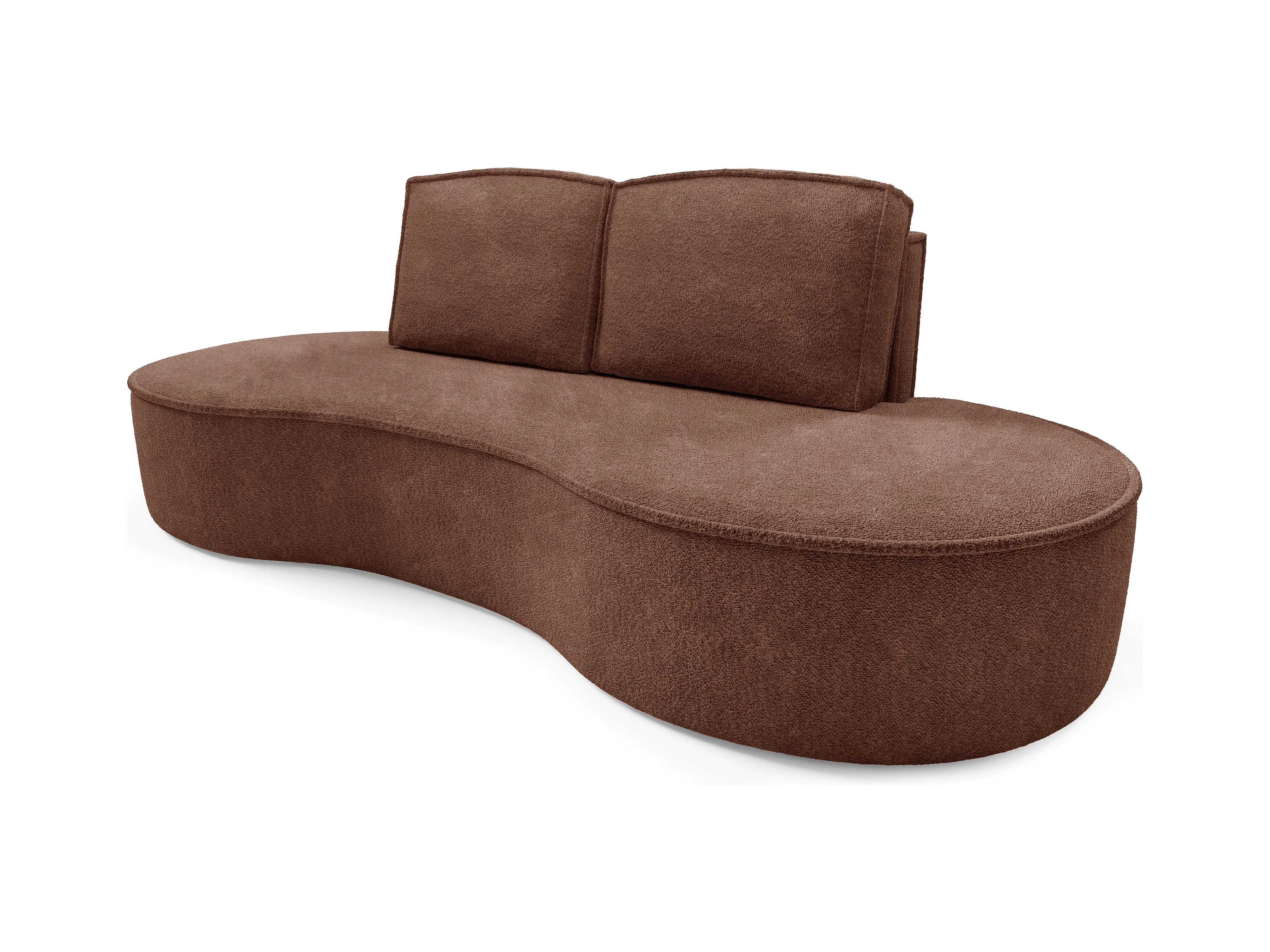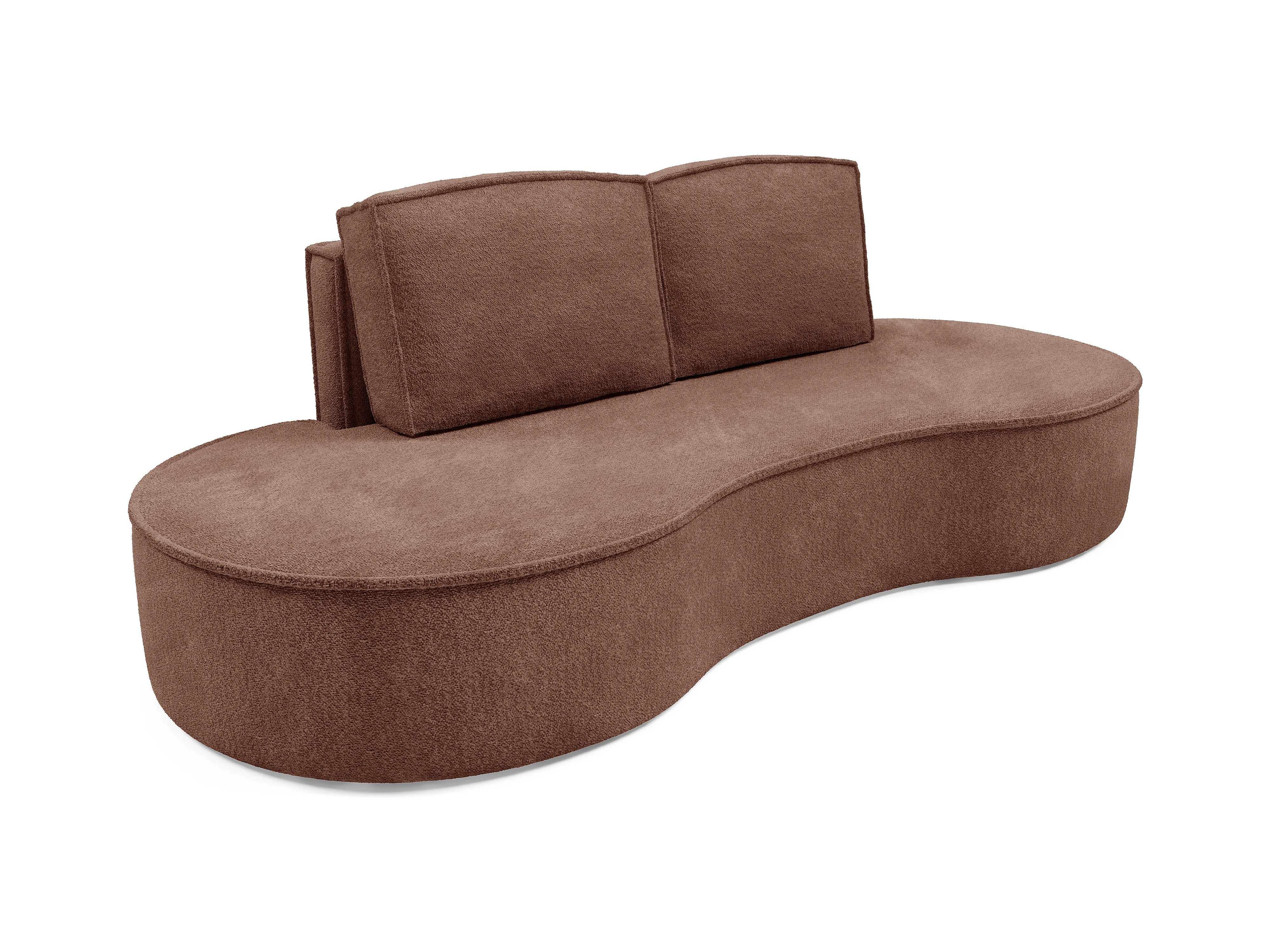 Sofa Molly – Freistehendes Halbrunde Ausführung Designsofa mit zwei eleganten abnehmbaren RückenKissen Abriamo Stoff Größe: 234x101x88 cm Farbe: Braun