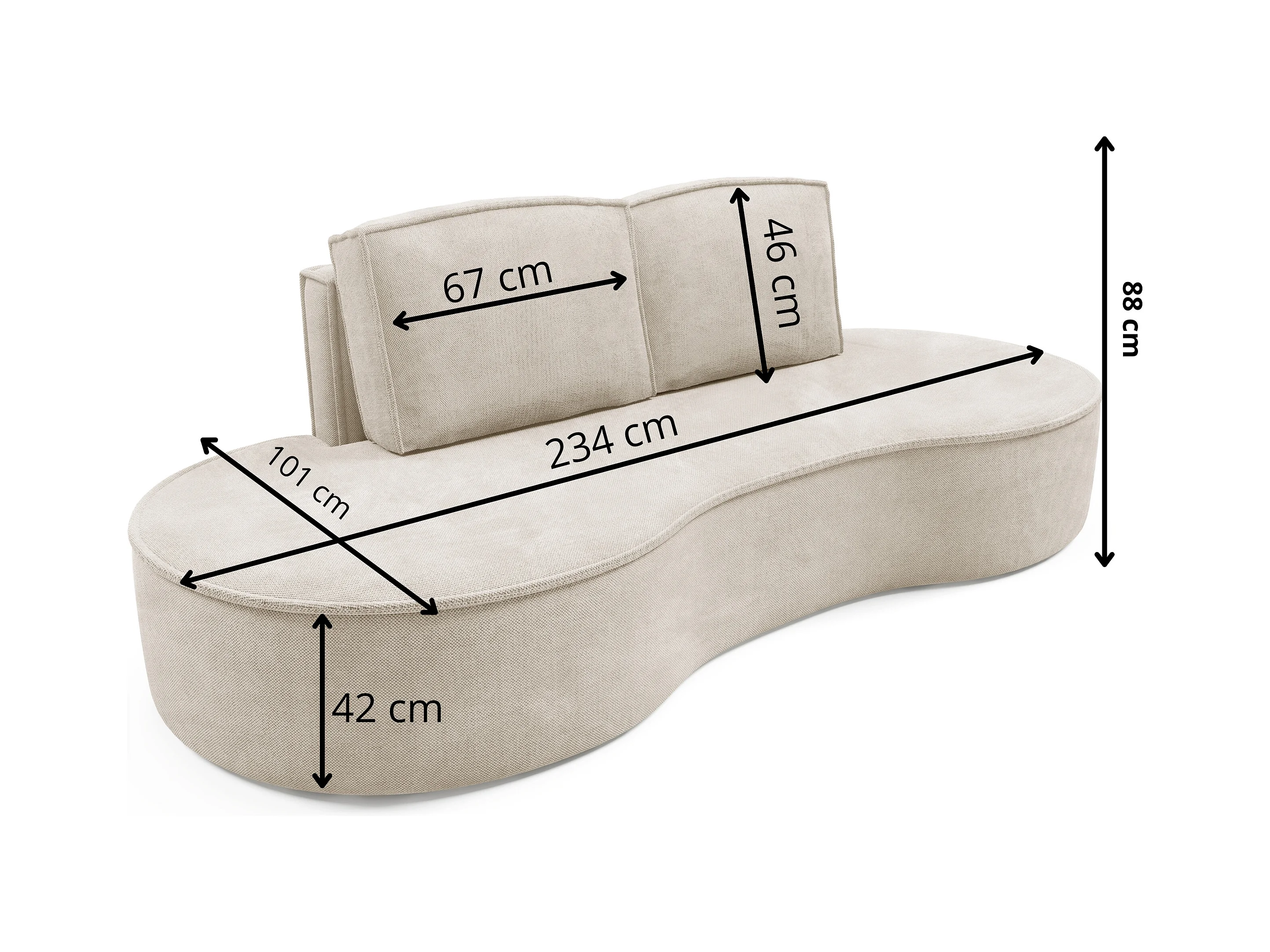 Sofa Molly – Freistehendes Halbrunde Ausführung Designsofa mit zwei eleganten abnehmbaren RückenKissen Curio Stoff Größe: 234x101x88 cm Farbe: Braun