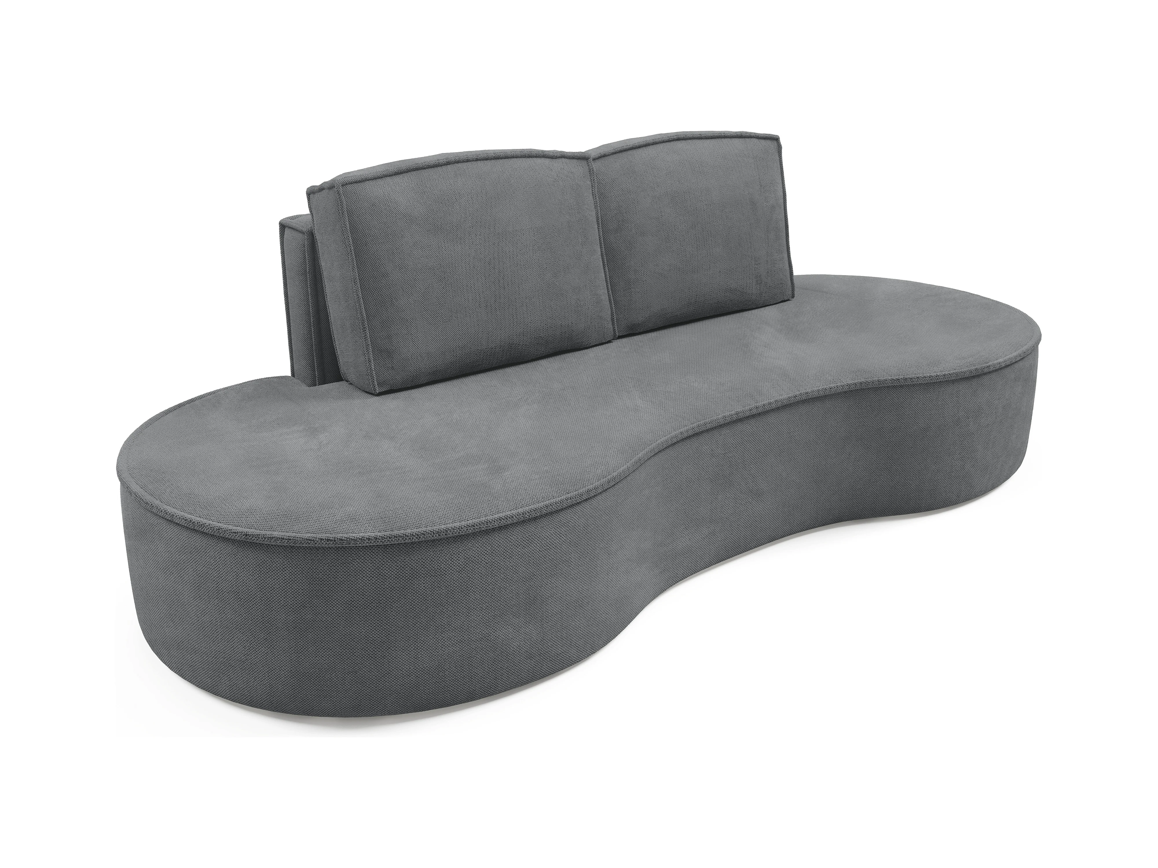 Sofa Molly – Freistehendes Halbrunde Ausführung Designsofa mit zwei eleganten abnehmbaren RückenKissen Curio Stoff Größe: 234x101x88 cm Farbe: Grau