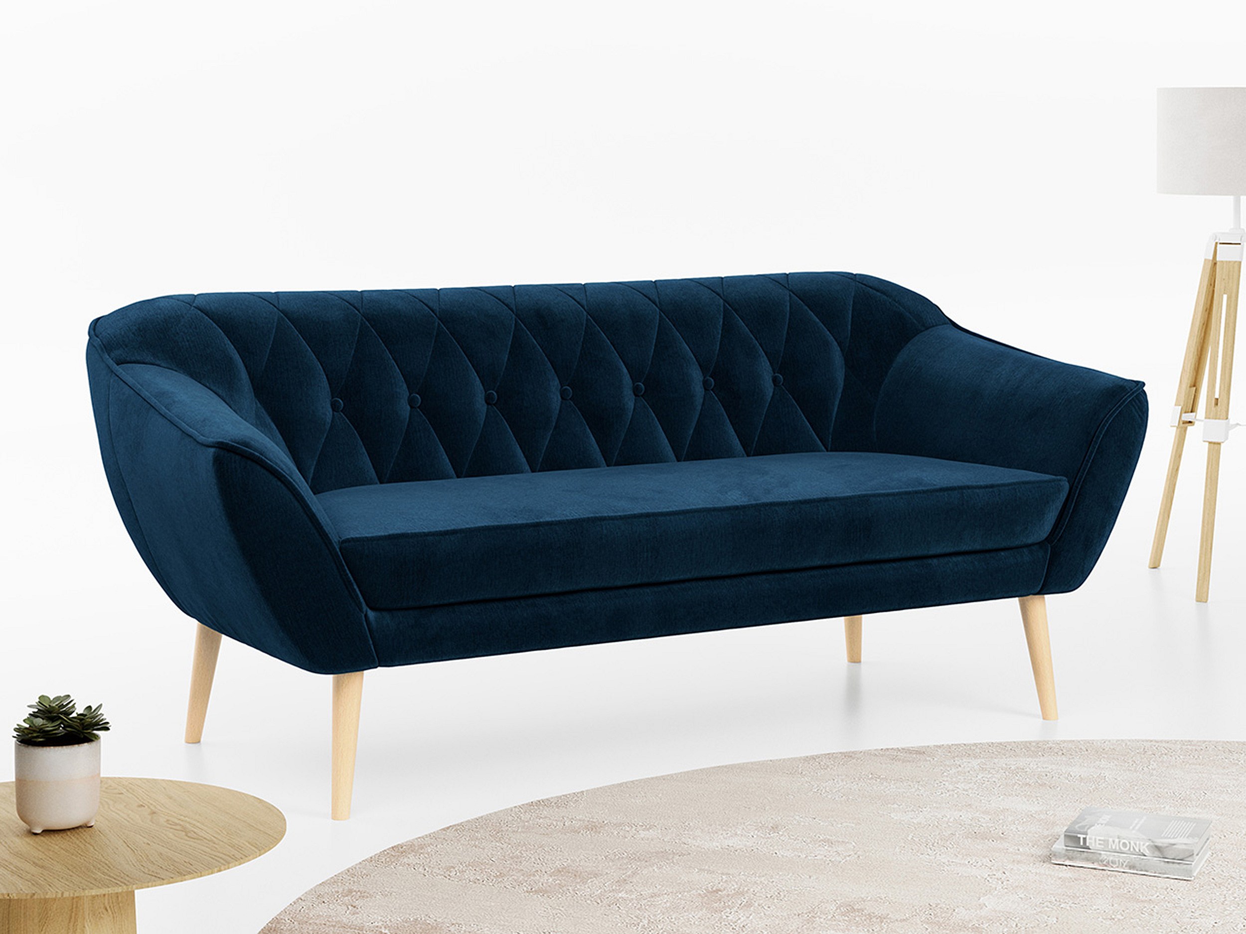 Sofa PIRS - 3-Sitzer Skandinavischer Sofa, mit Armlehnen, Holzbeine - Dunkelblau Velvet