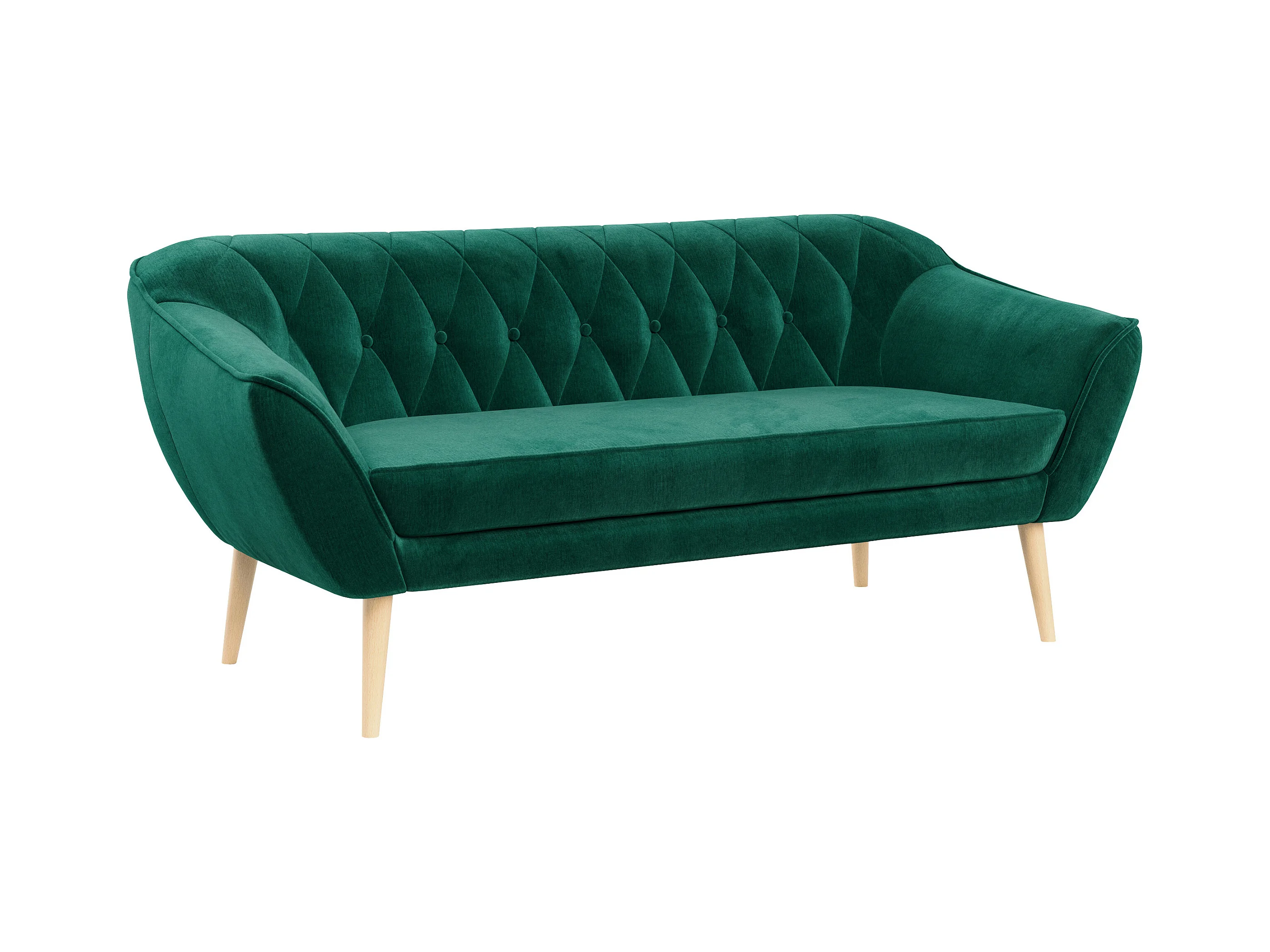 Sofa PIRS - 3-Sitzer Skandinavischer Sofa, mit Armlehnen, Holzbeine - Dunkelgrün Velvet