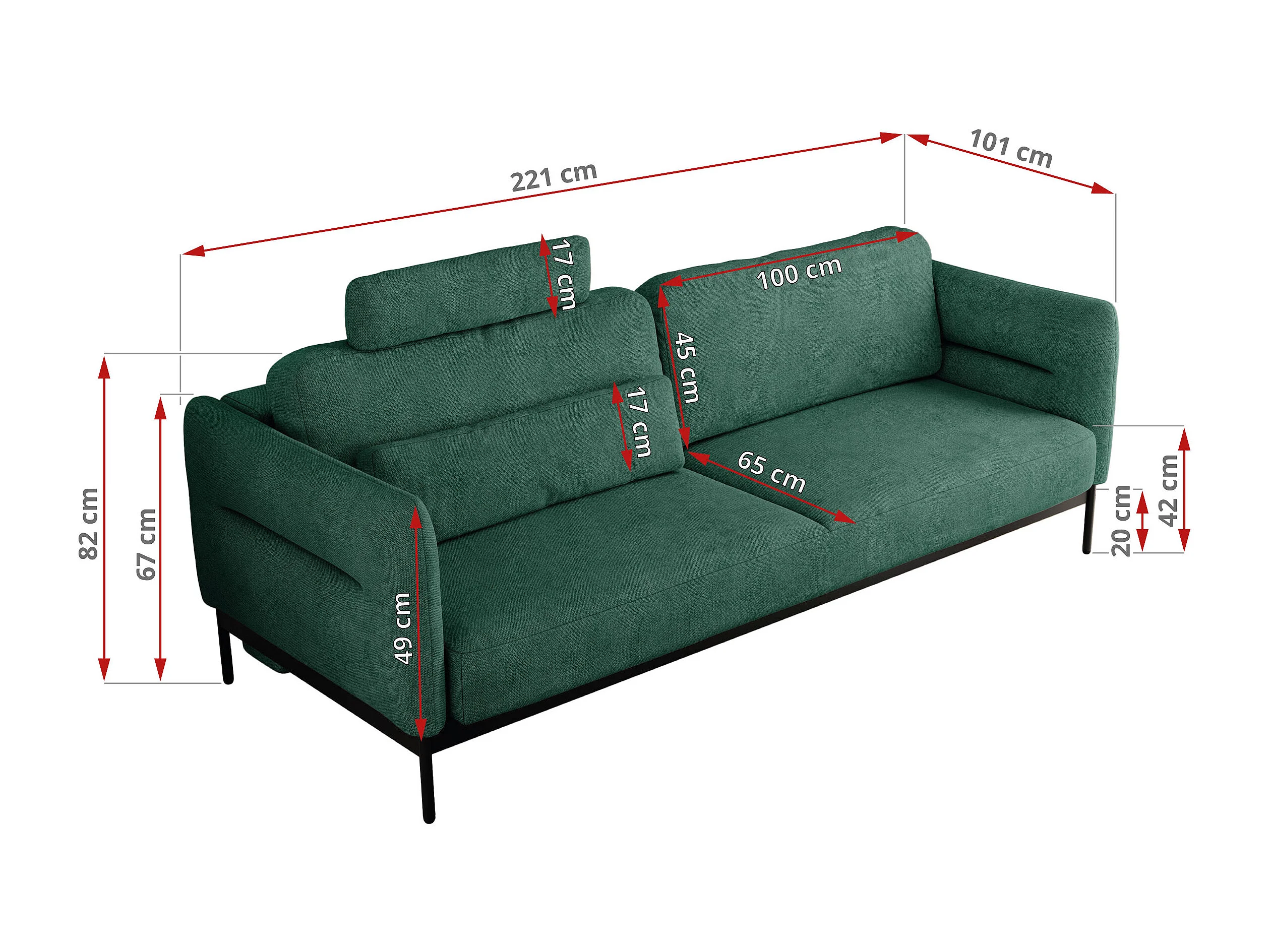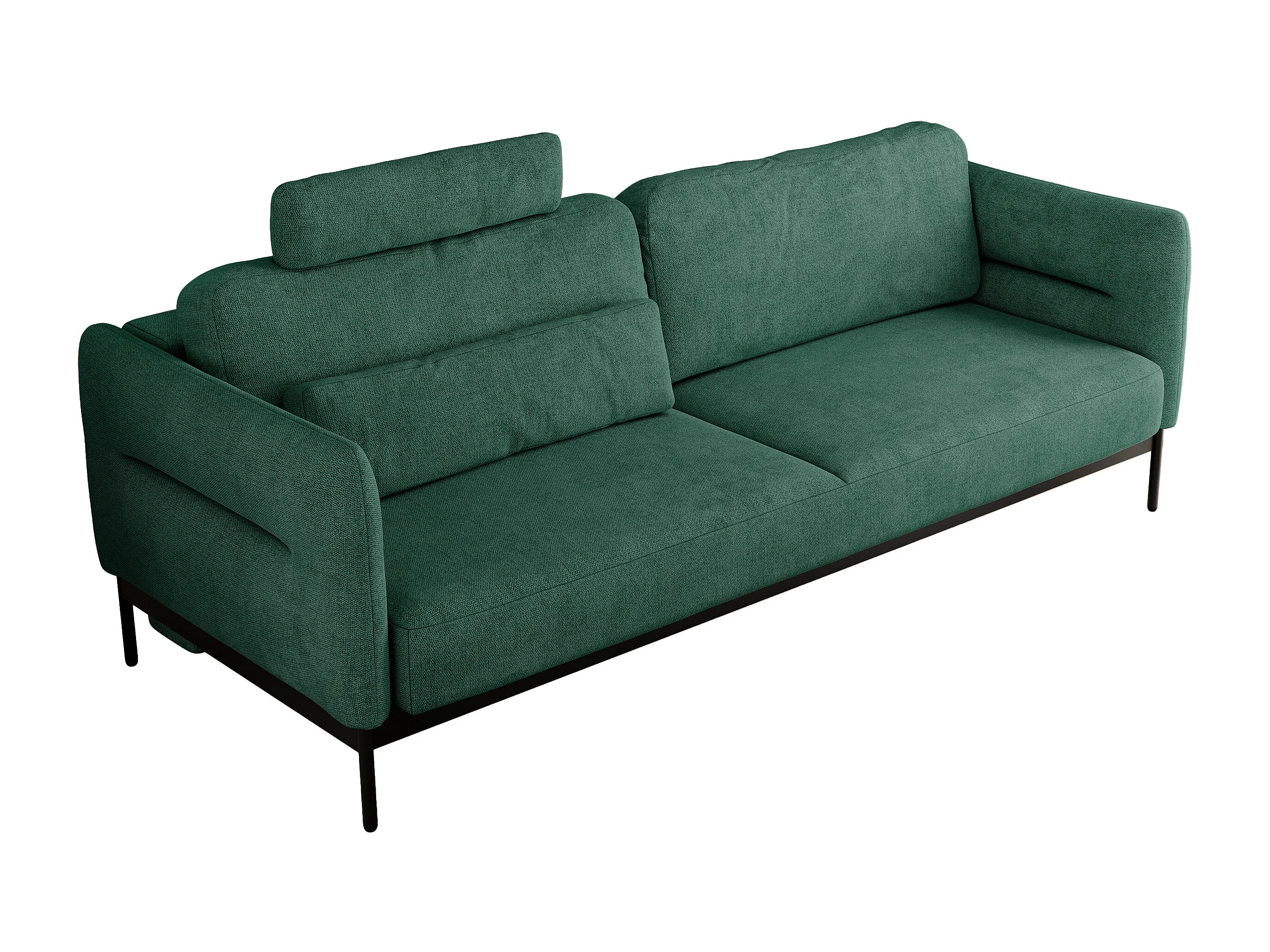 Sofa SALENTO - 3-Sitzer mit Metallbeine, mobile Kopfstütze, Schlafsofa mit lose Kissen - Grün Strukture