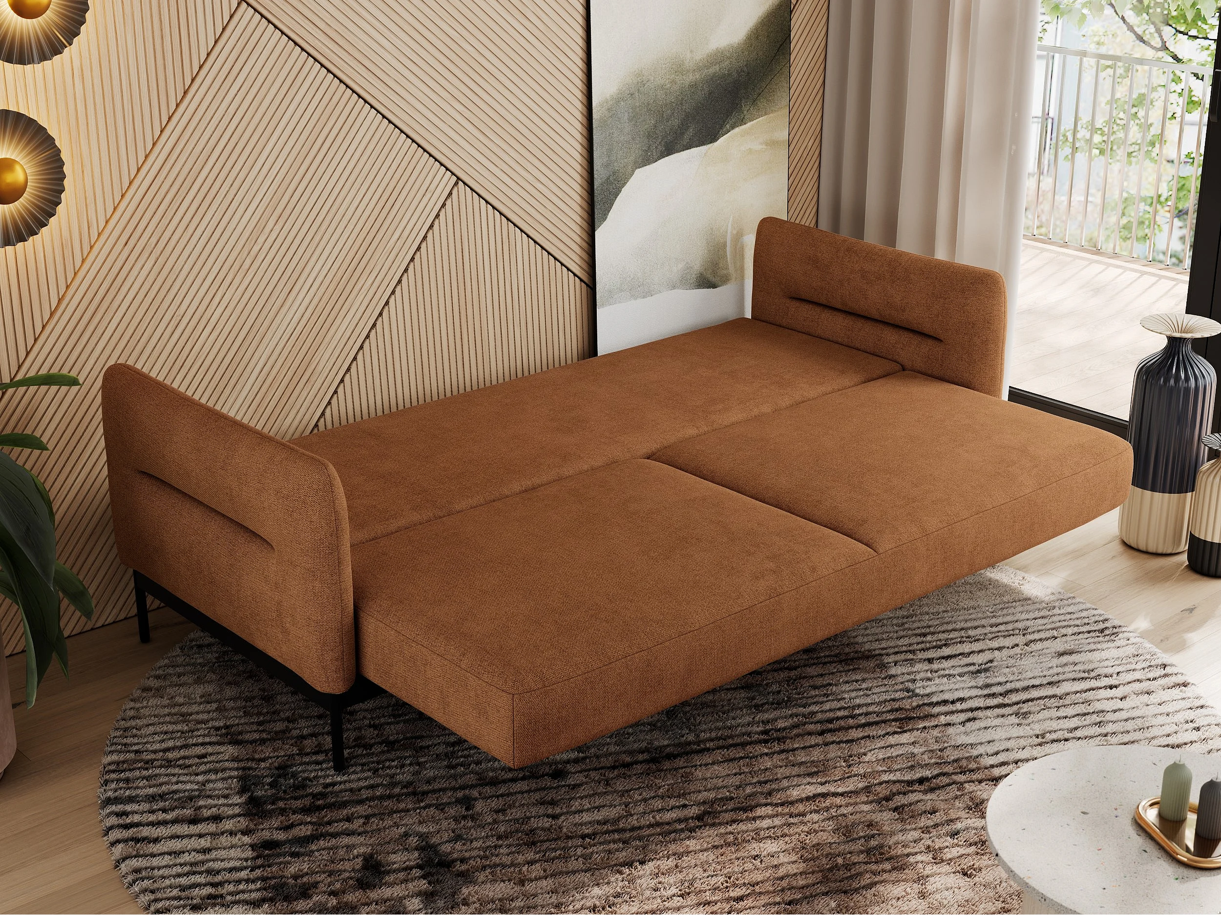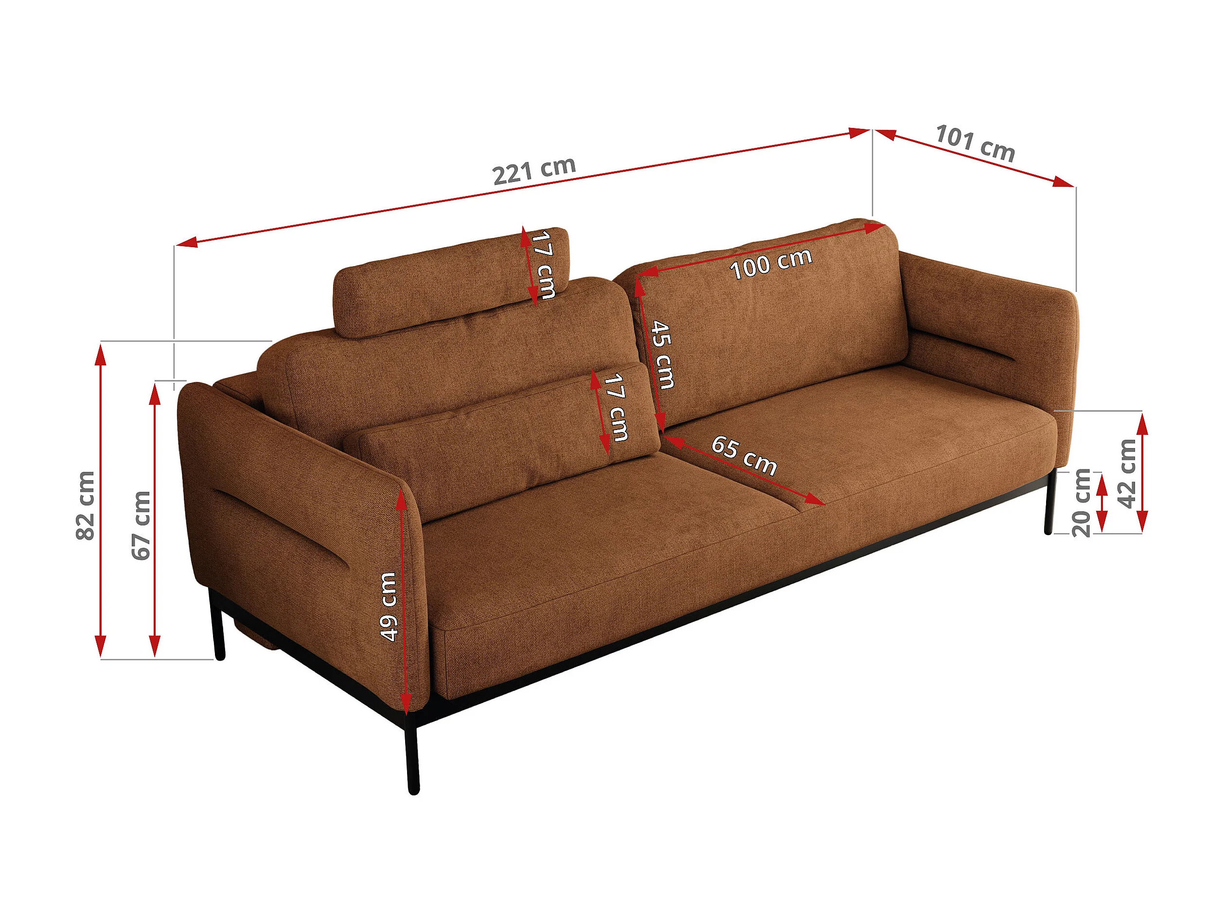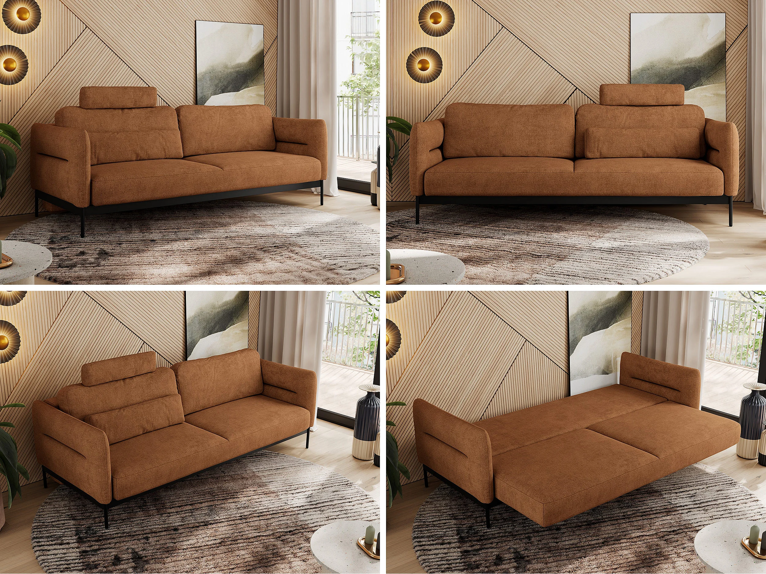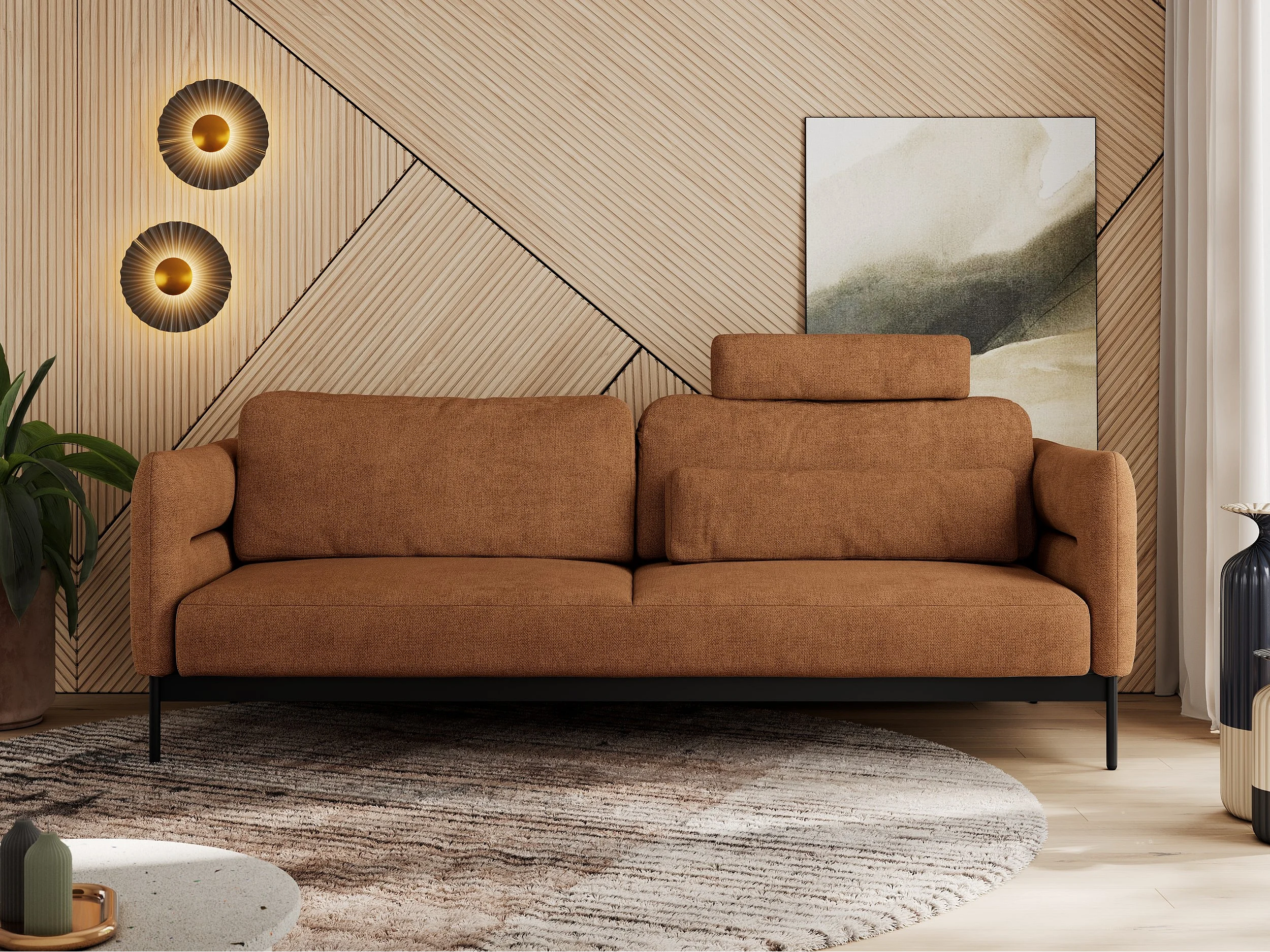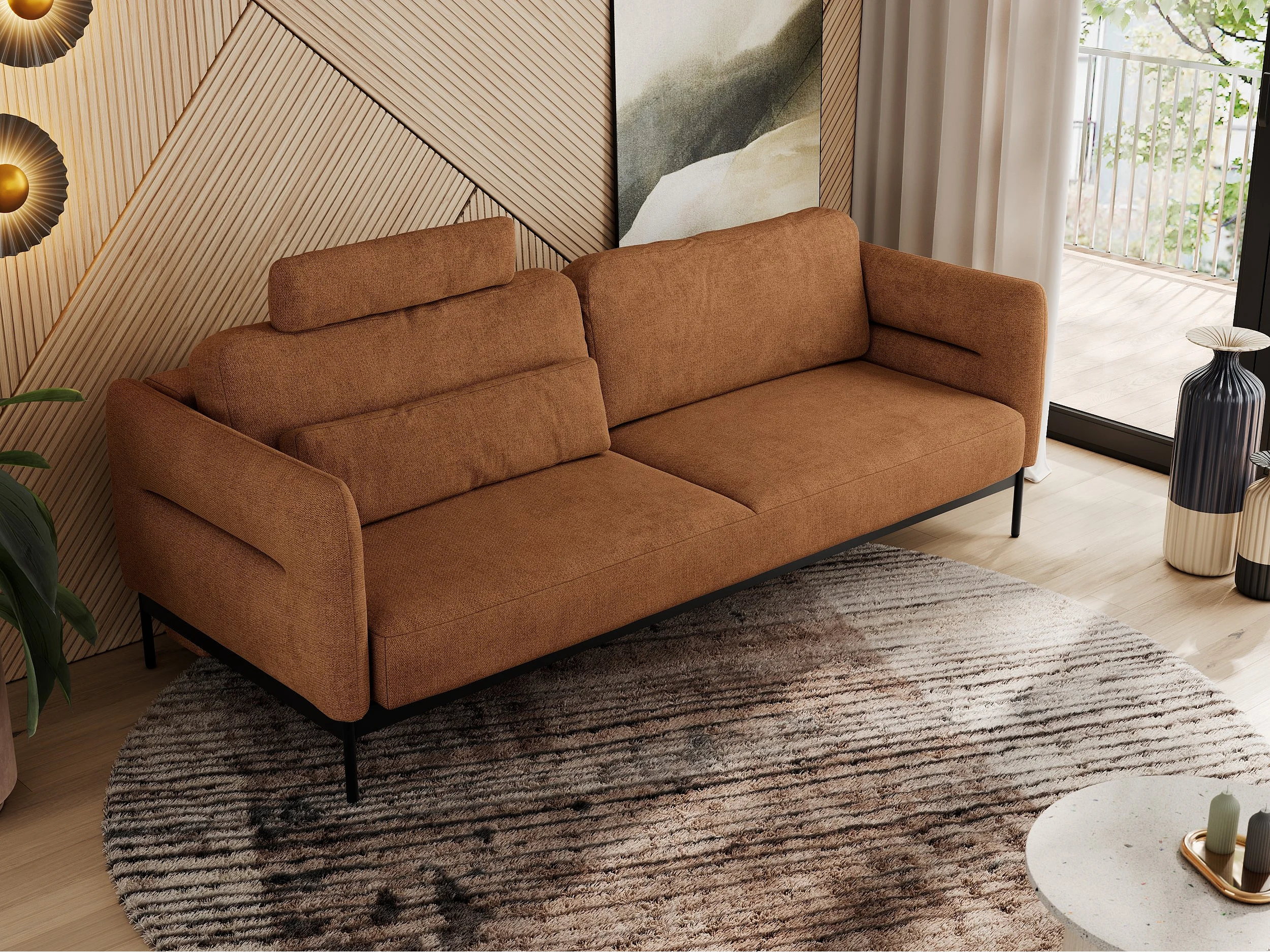 Sofa SALENTO - 3-Sitzer mit Metallbeine, mobile Kopfstütze, Schlafsofa mit lose Kissen - Orange Strukture