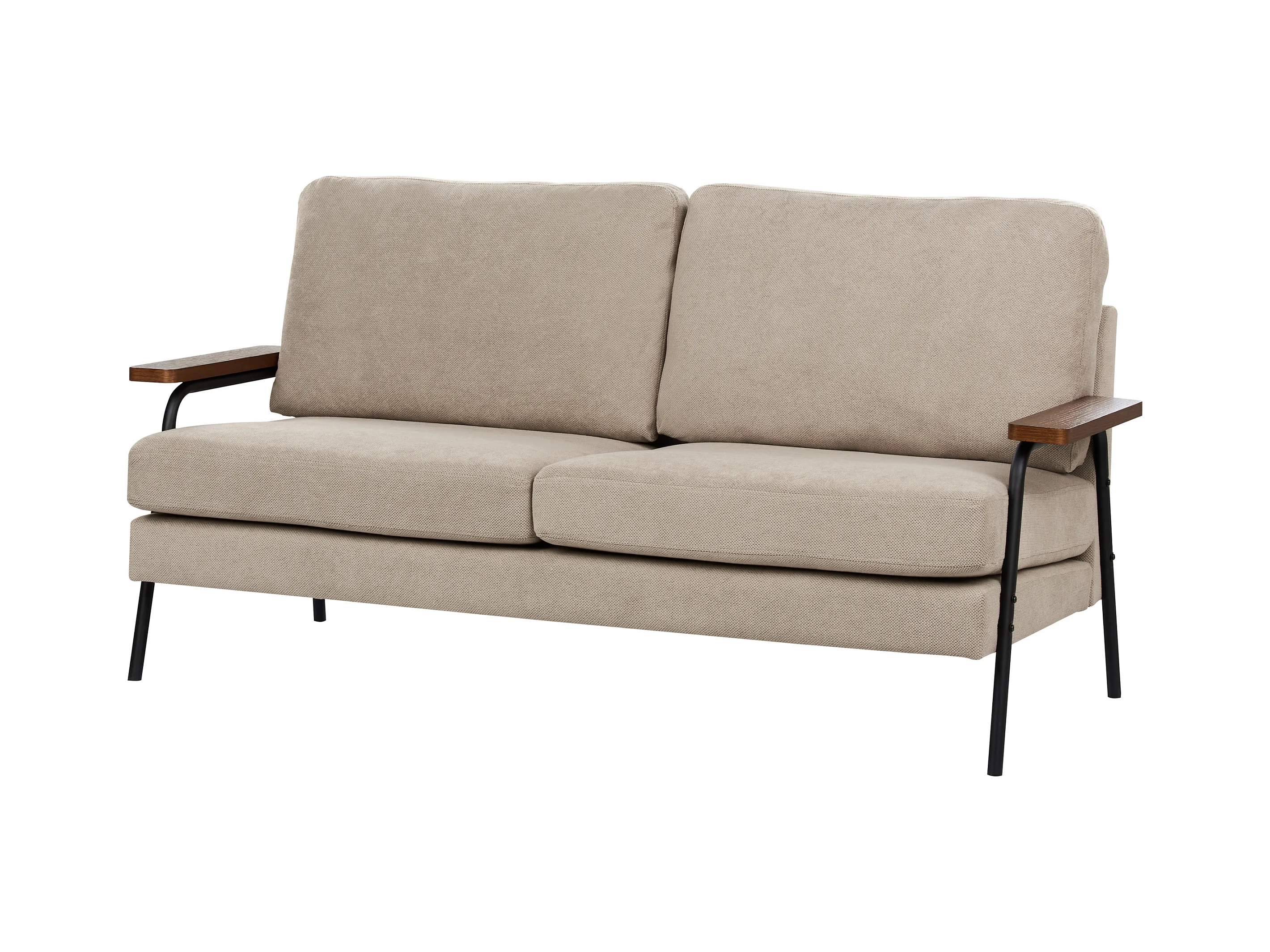 Sofa Stoff beige / taupe 3-Sitzer gepolstert Holz Armlehnen Wohnzimmer Arkanes