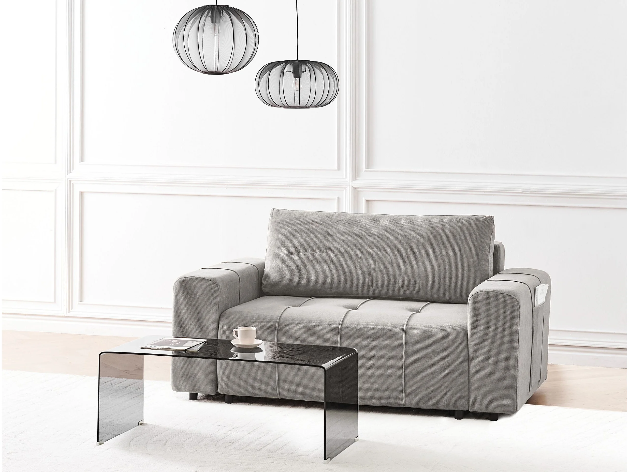 Sofa Stoff hell grau 2-Sitzer gepolstert mit Schlaffunktion und Stauraum Innvik