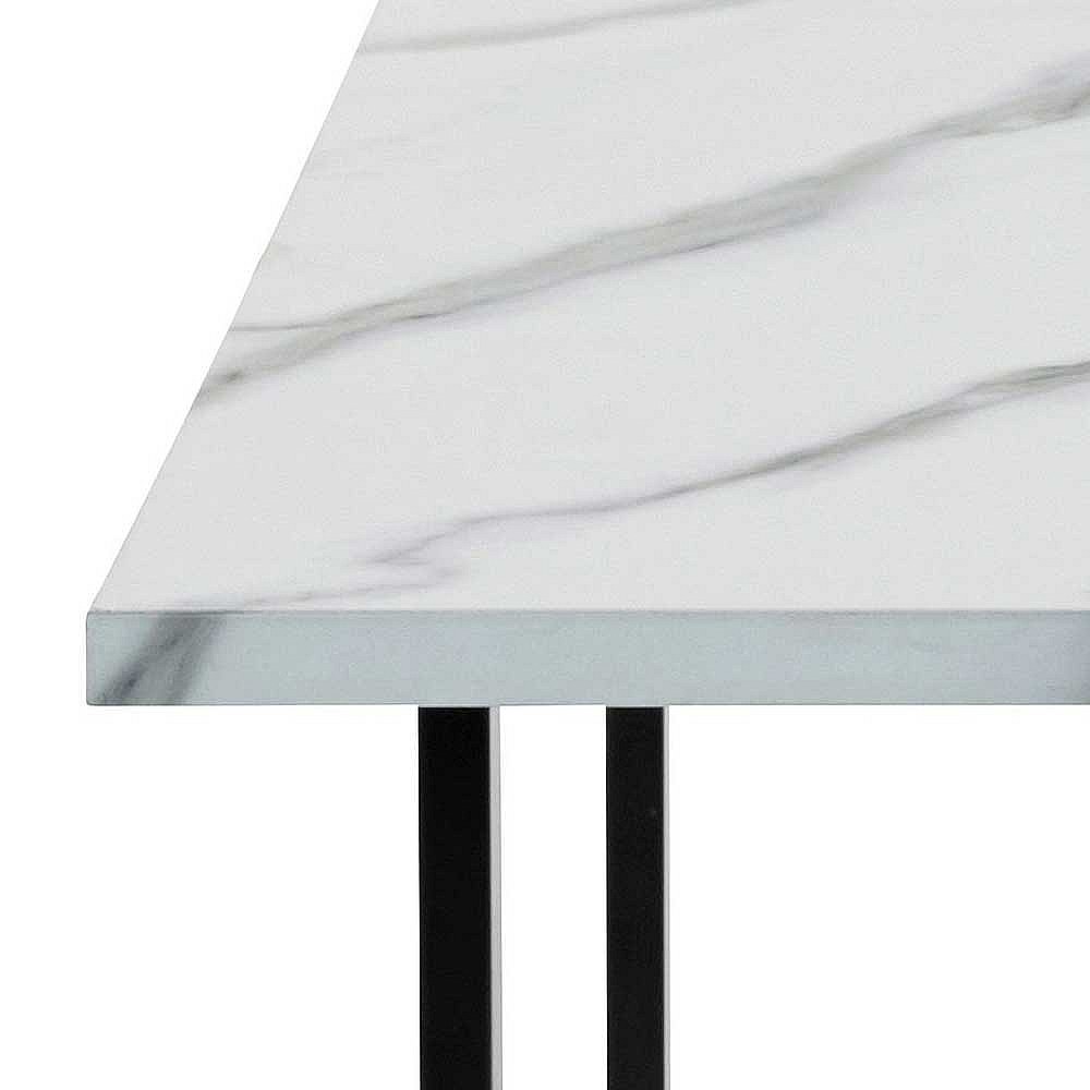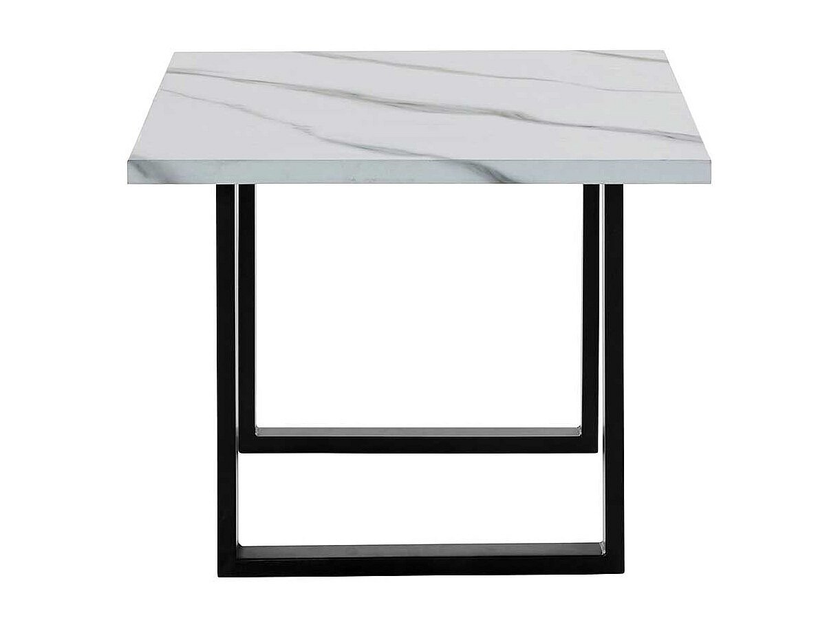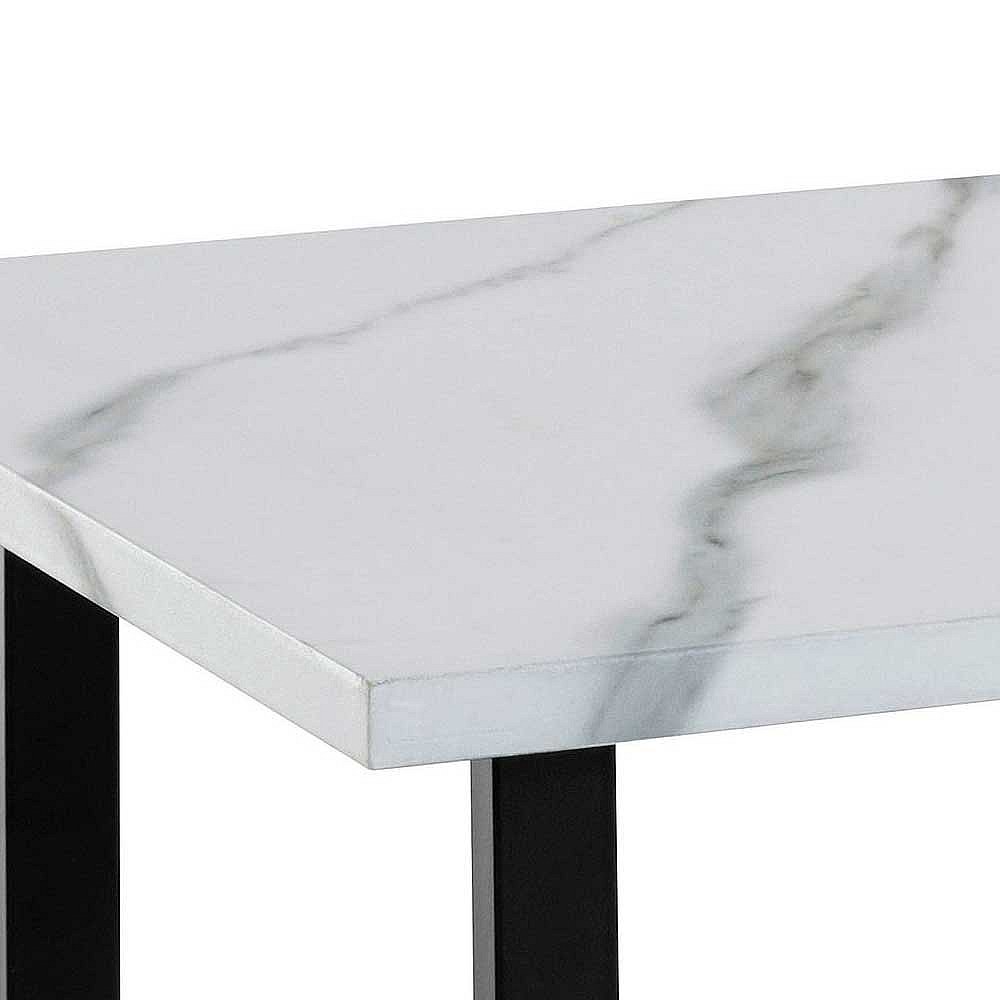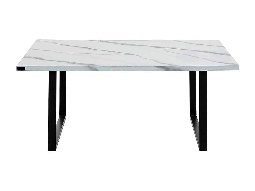 Sofa Tisch mit Bügelgestell Weiß Marmor Optik und Schwarz