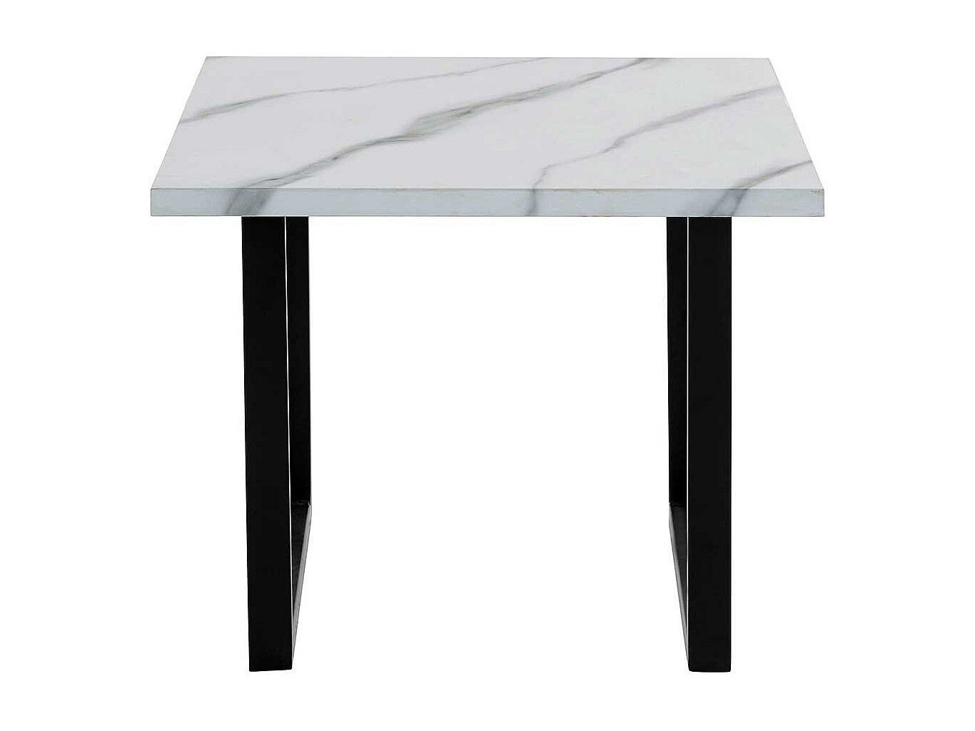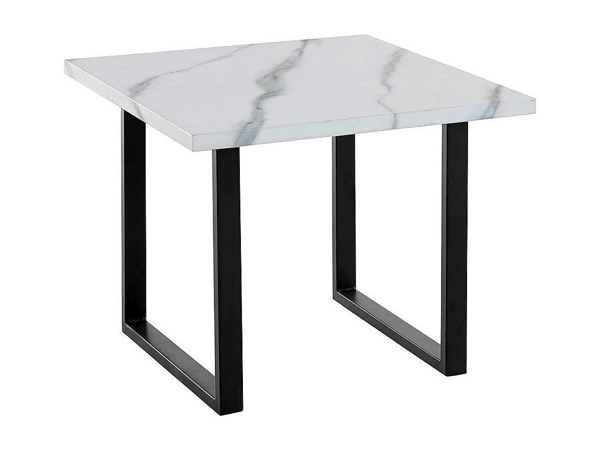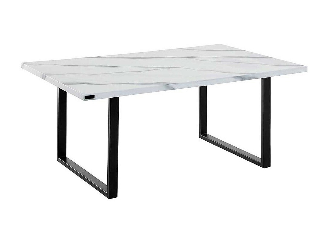 Sofa Tisch mit Bügelgestell Weiß Marmor Optik und Schwarz
