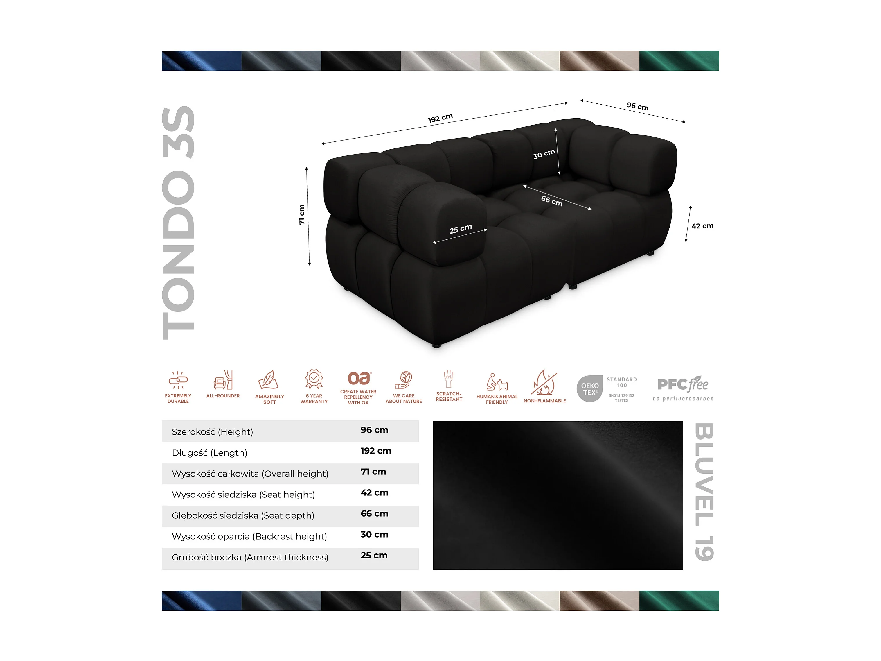 Sofa Tondo 3 s-Bluvel 19 schwarz