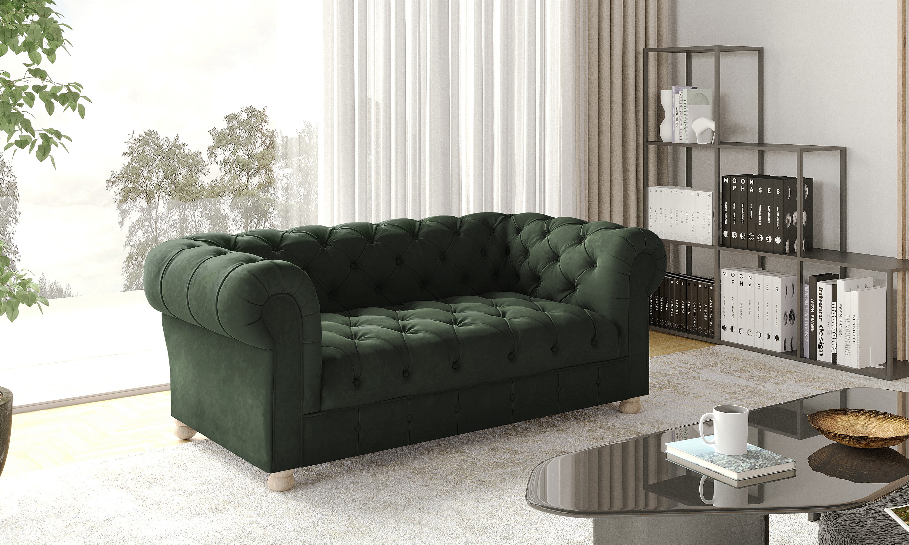 Sofa Zweisitzer CHESTERFIELD, Stoff Whisper, Grün