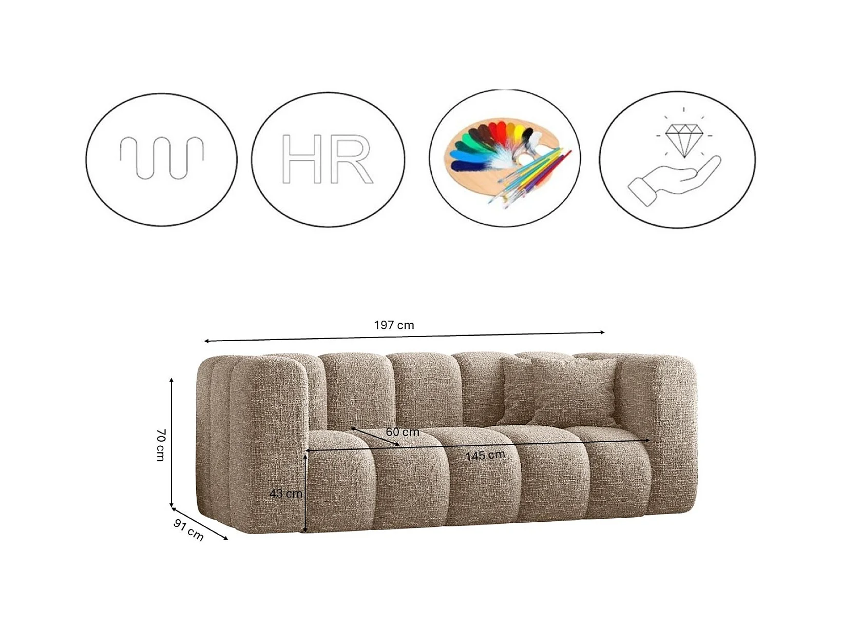 Sofagarnitur 2+1+1 Couchgarnitur serie Grand stilvol, Stoff Haga Beige