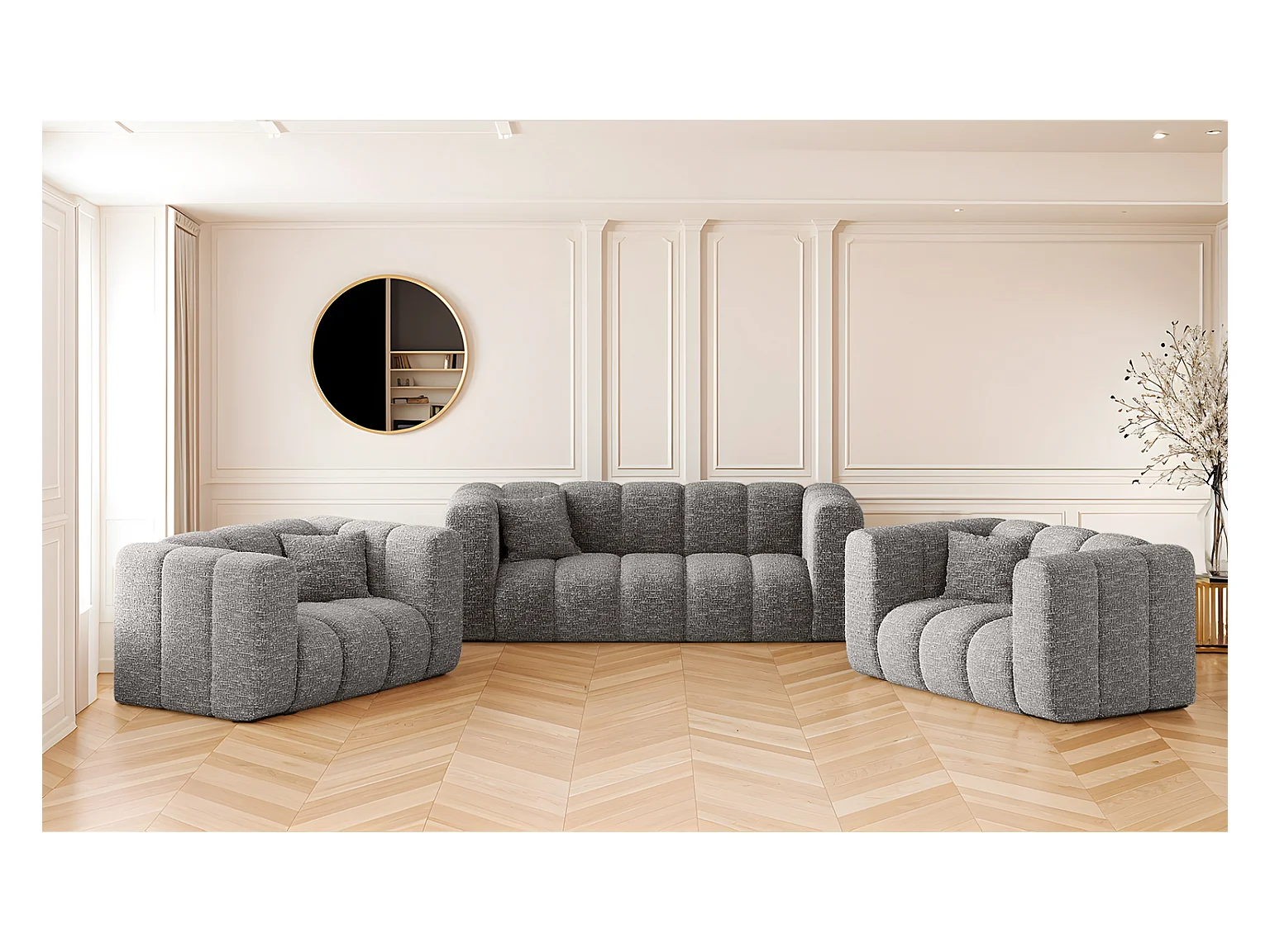 Sofagarnitur 2+1+1 Couchgarnitur serie Grand stilvol, Stoff Haga Grau
