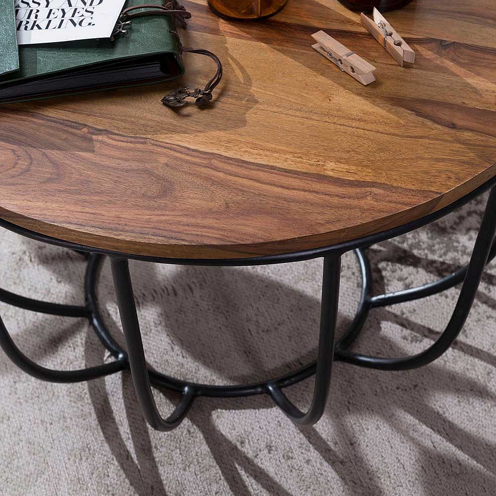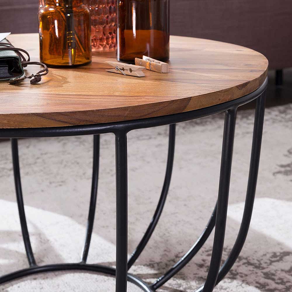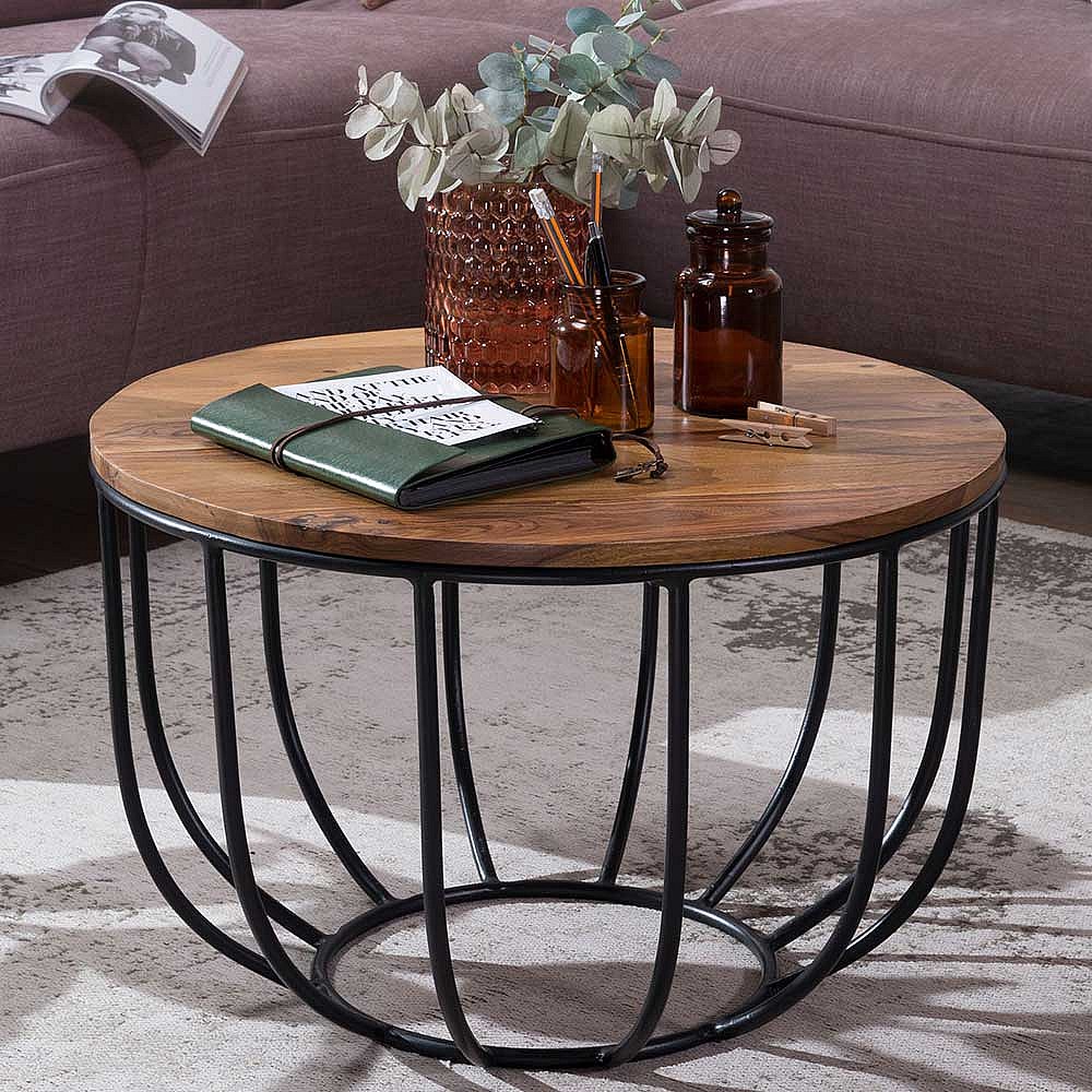 Sofatisch aus Sheesham Massivholz und Eisen rund