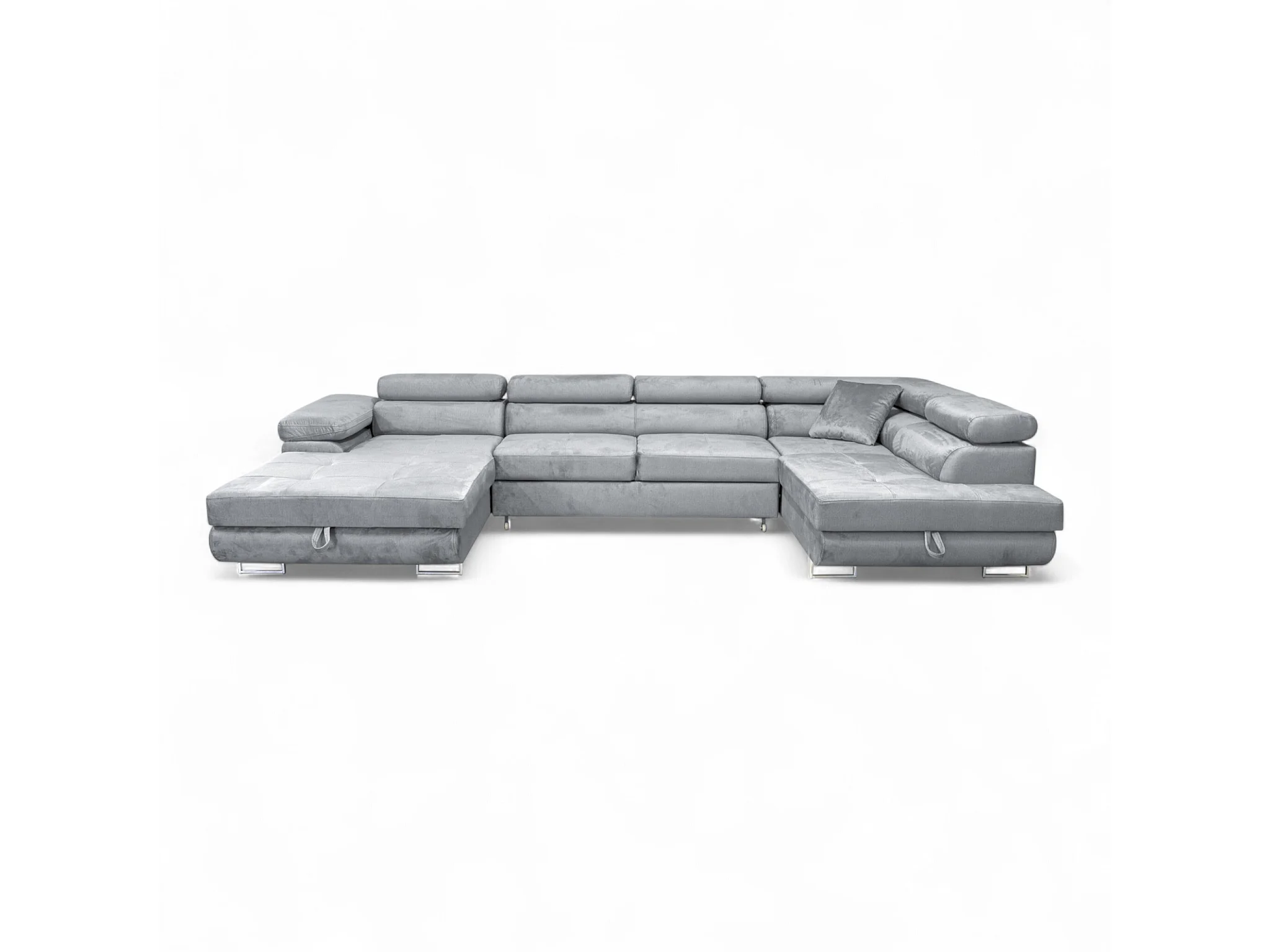 Sofiland Aller XXL U-Form Ecksofa rechts mit Schlaffunktion, Couchgarnitur mit 2 Bettkästen, Wohnzimmersofa Hellgrau MONOLITH 84, Sofa, Bettsofa