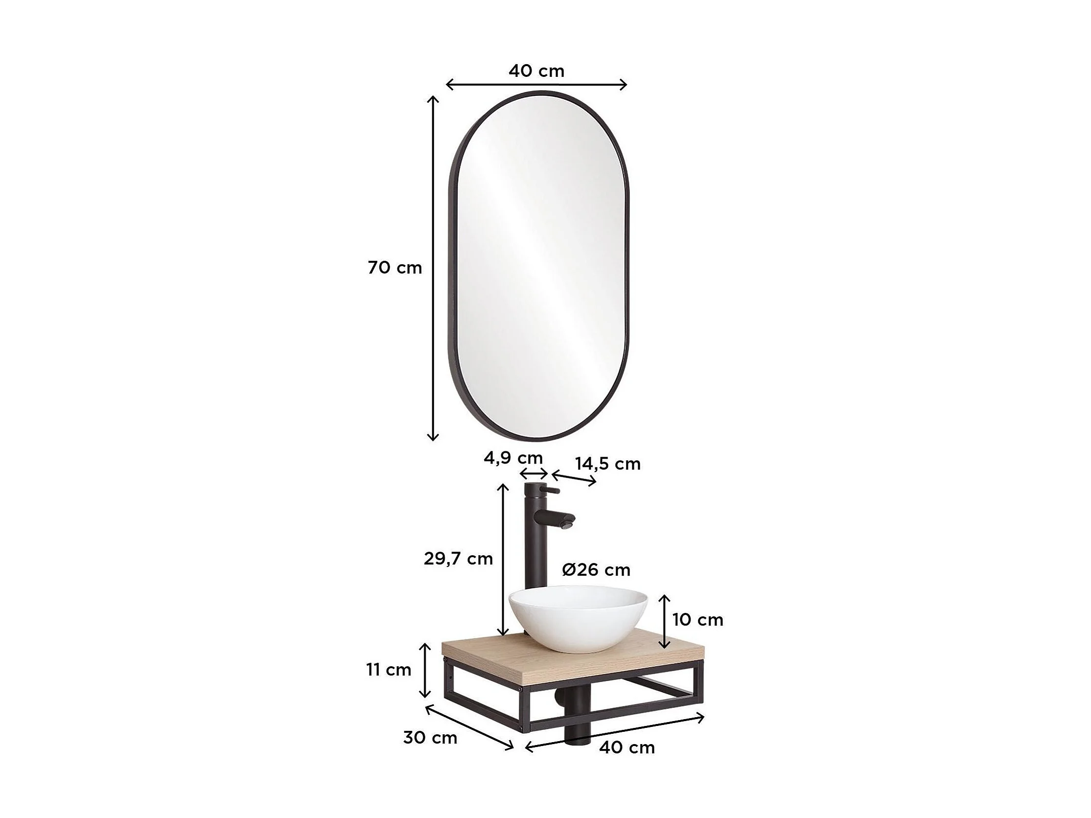 SOHO schmales Handwaschbecken + Waschbecken + Wasserhahn + Spiegel