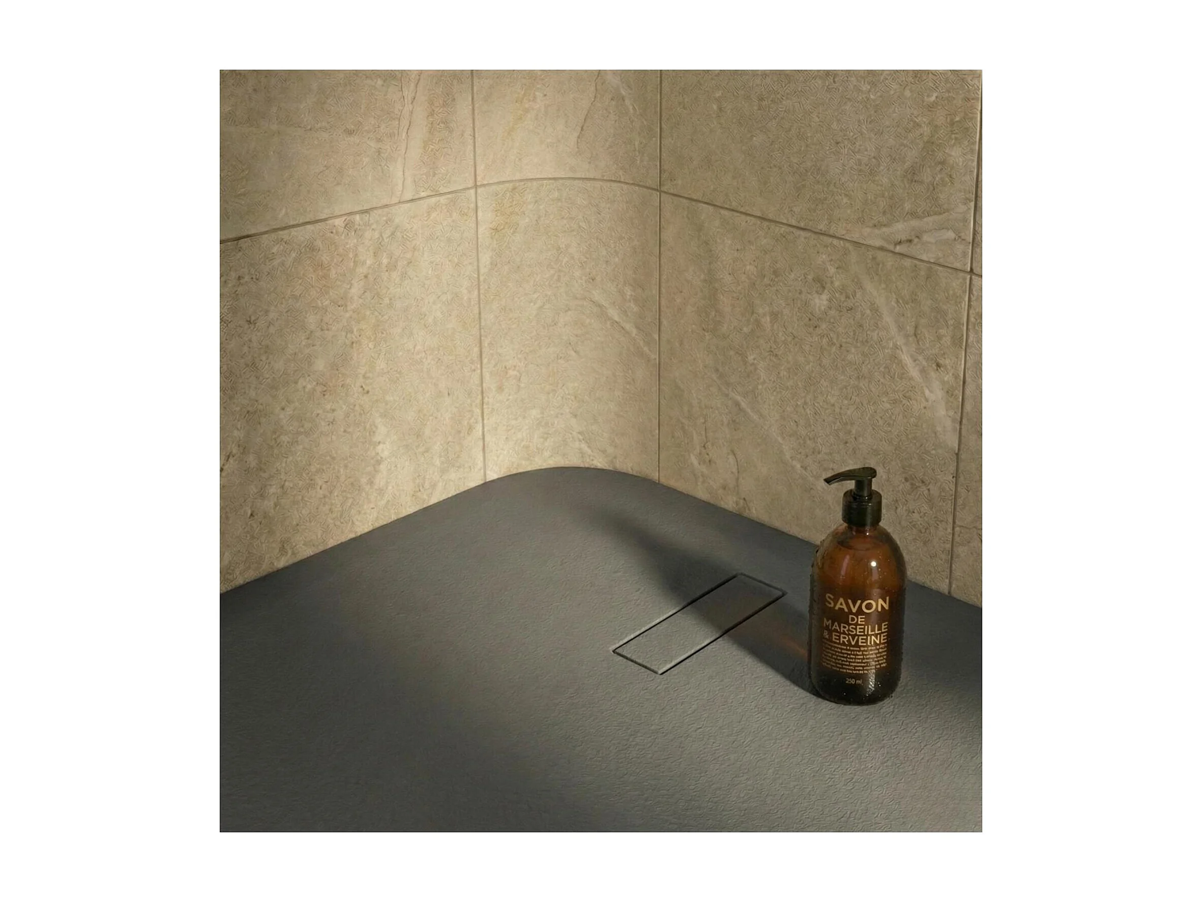 Extraflache Duschwanne in Anthrazitgrau mit Steinoptik – Abfluss inklusive 100x80