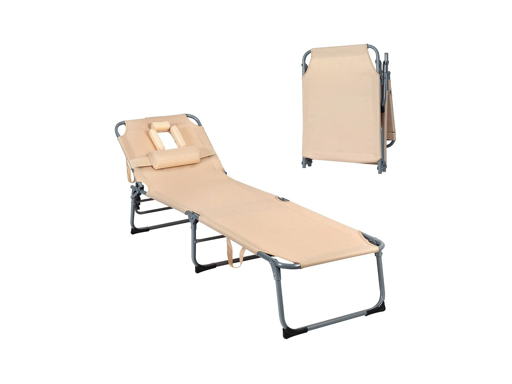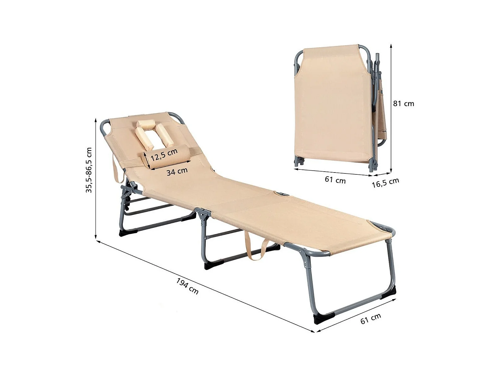 Verstellbare Sonnenliege Zusammenklappbare Strandliege mit Kissen 194 x 61 x 35,5 - 86,5 cm Beige