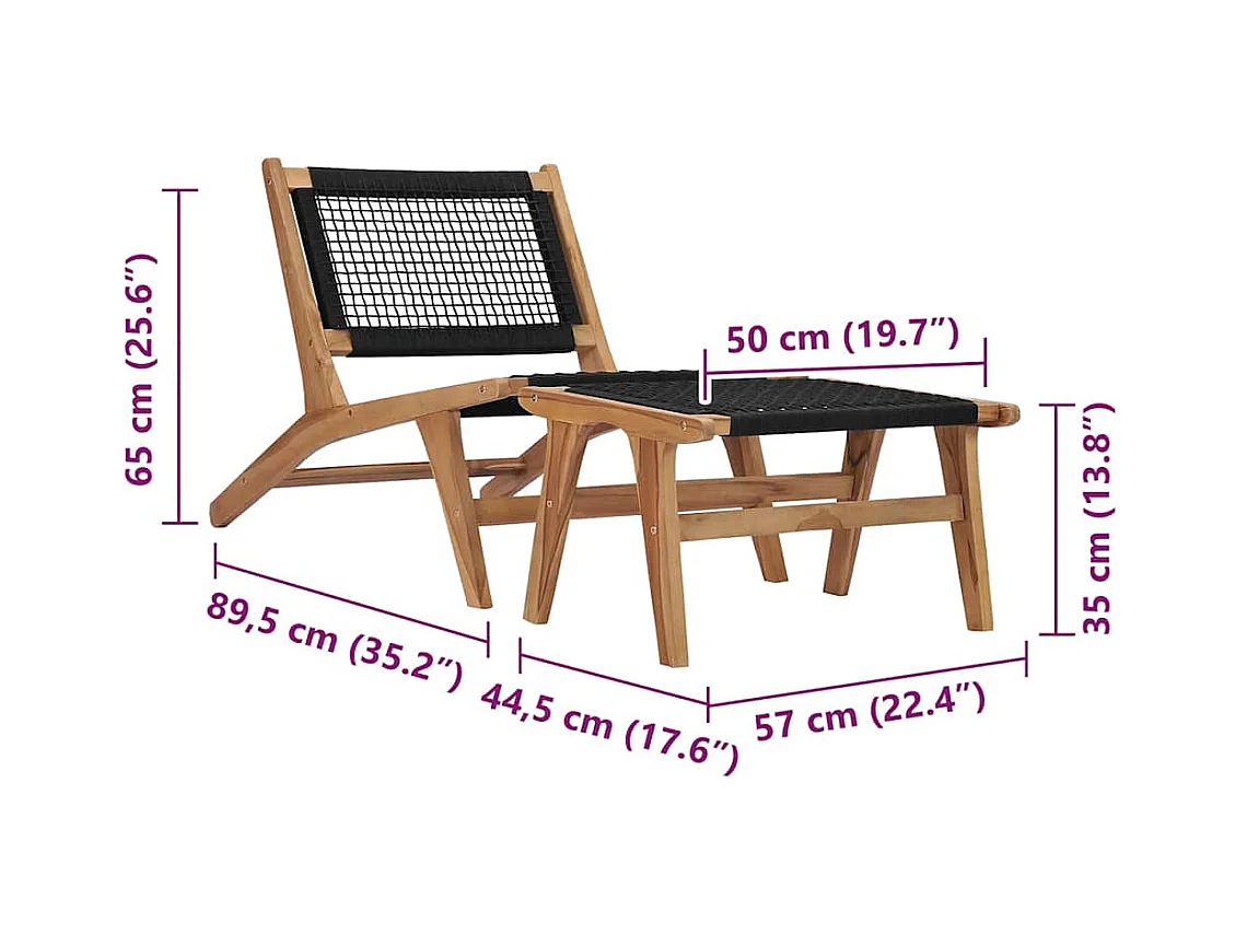 Sonnenliege mit Fußablage Massivholz Teak und Seil