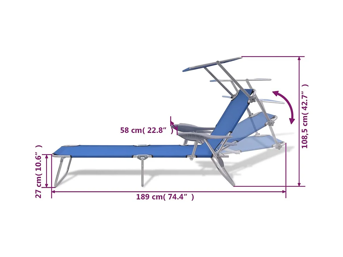 Sonnenliege mit Sonnenschutz Stahl Blau