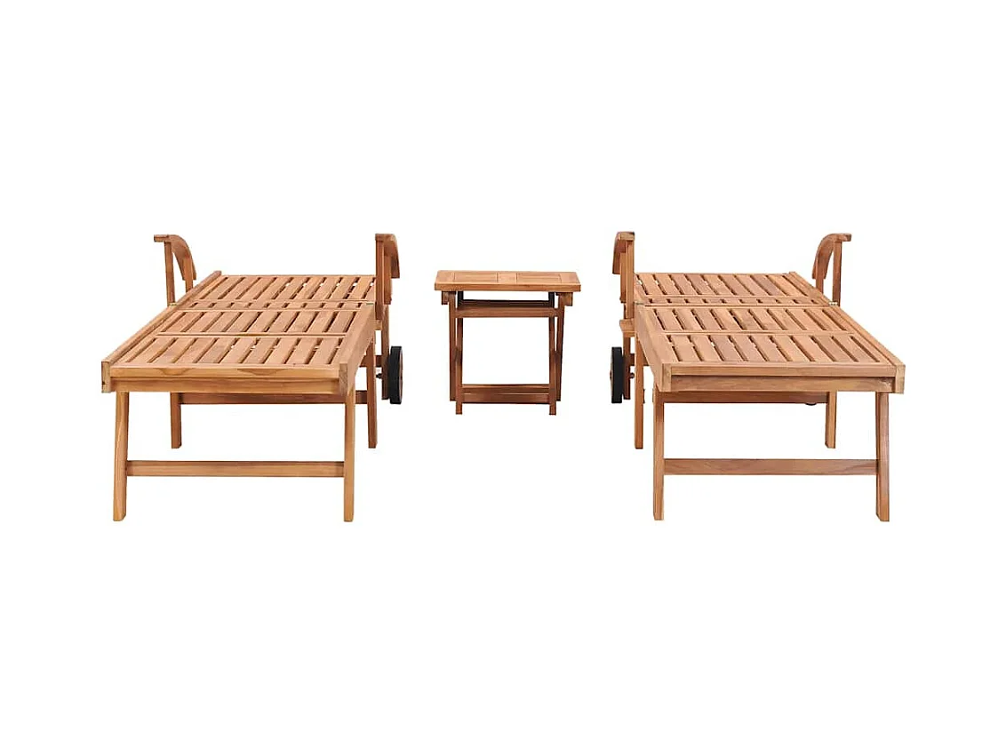 Sonnenliegen 2 Stk. mit Tisch Massivholz Teak