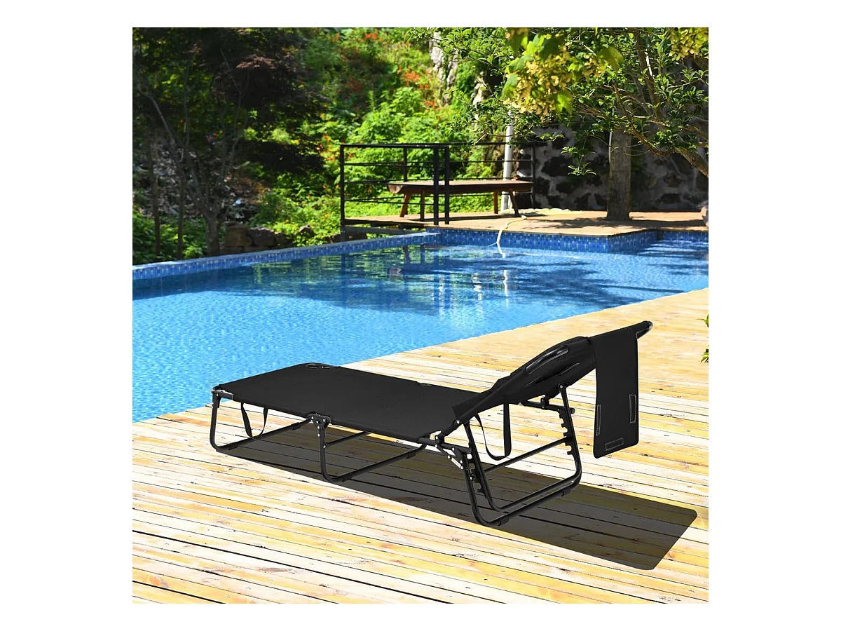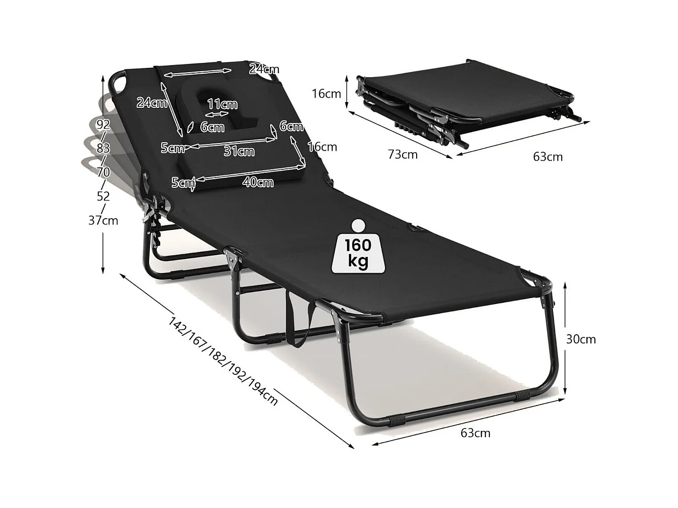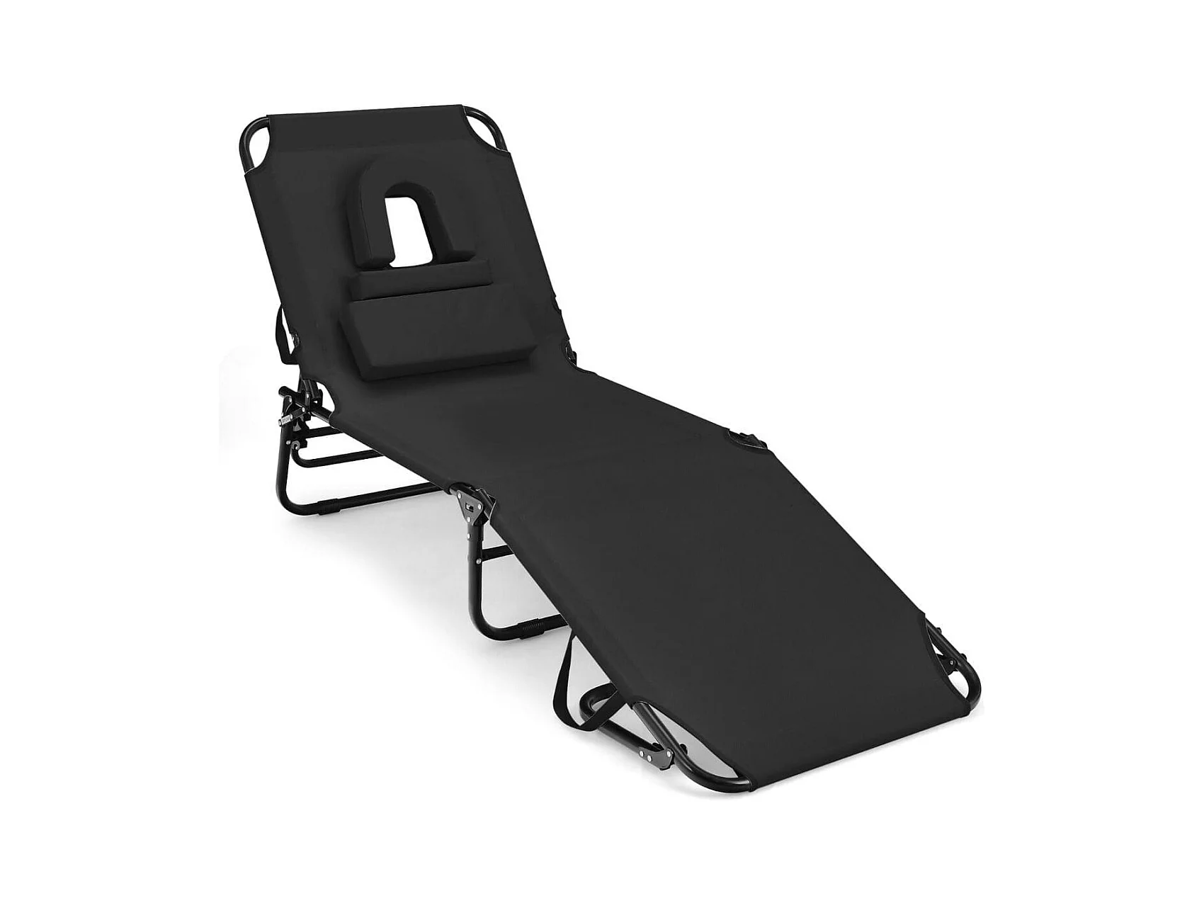 Klappbare Sonnenliege mit Gesichtsöffnung & 3 Kissen & 5-Fach Verstellbarer Rückenlehne Schwarz