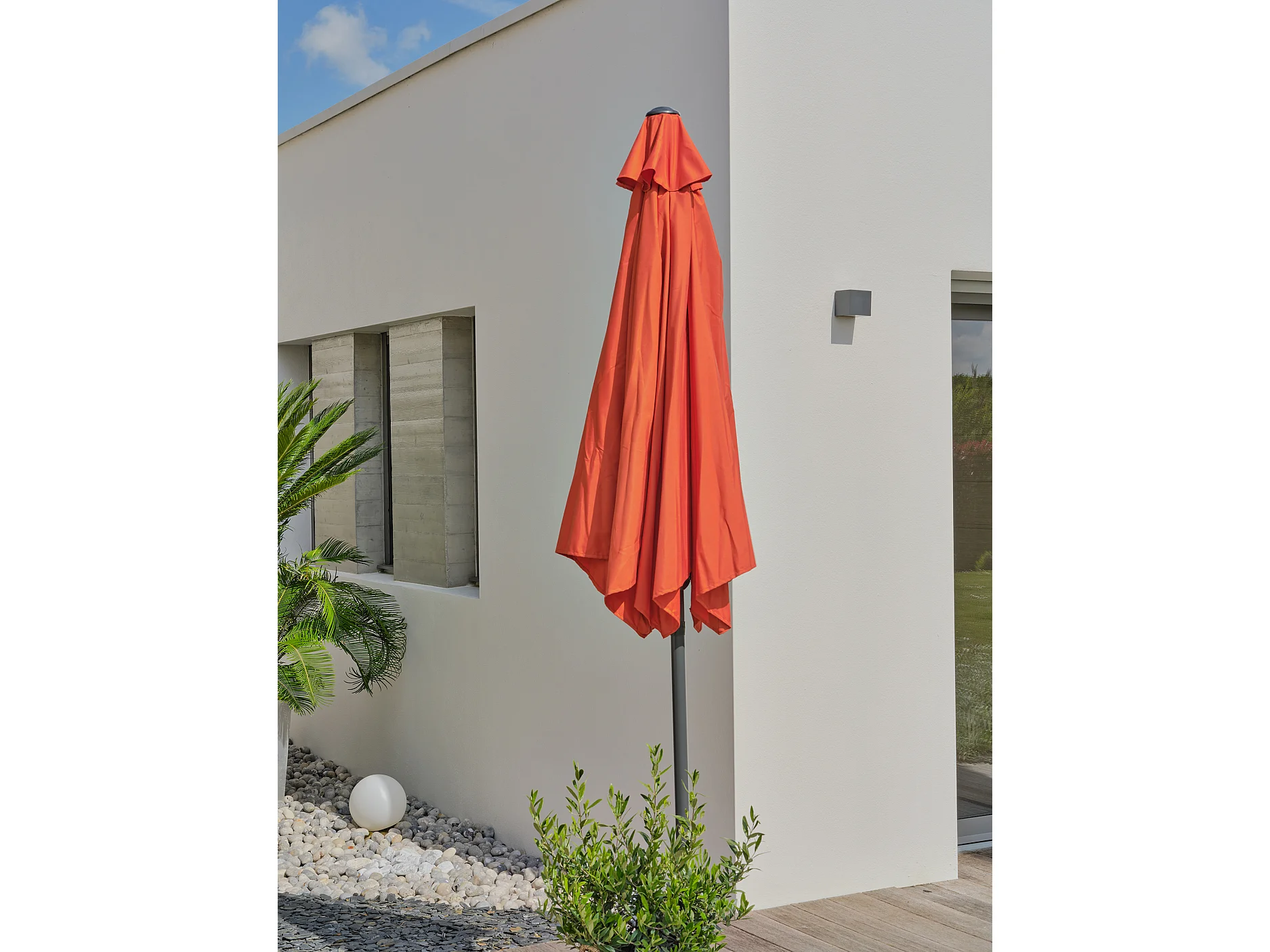 Sonnenschirm mit Handkurbel, Aluminium, Stoff Terrakotta