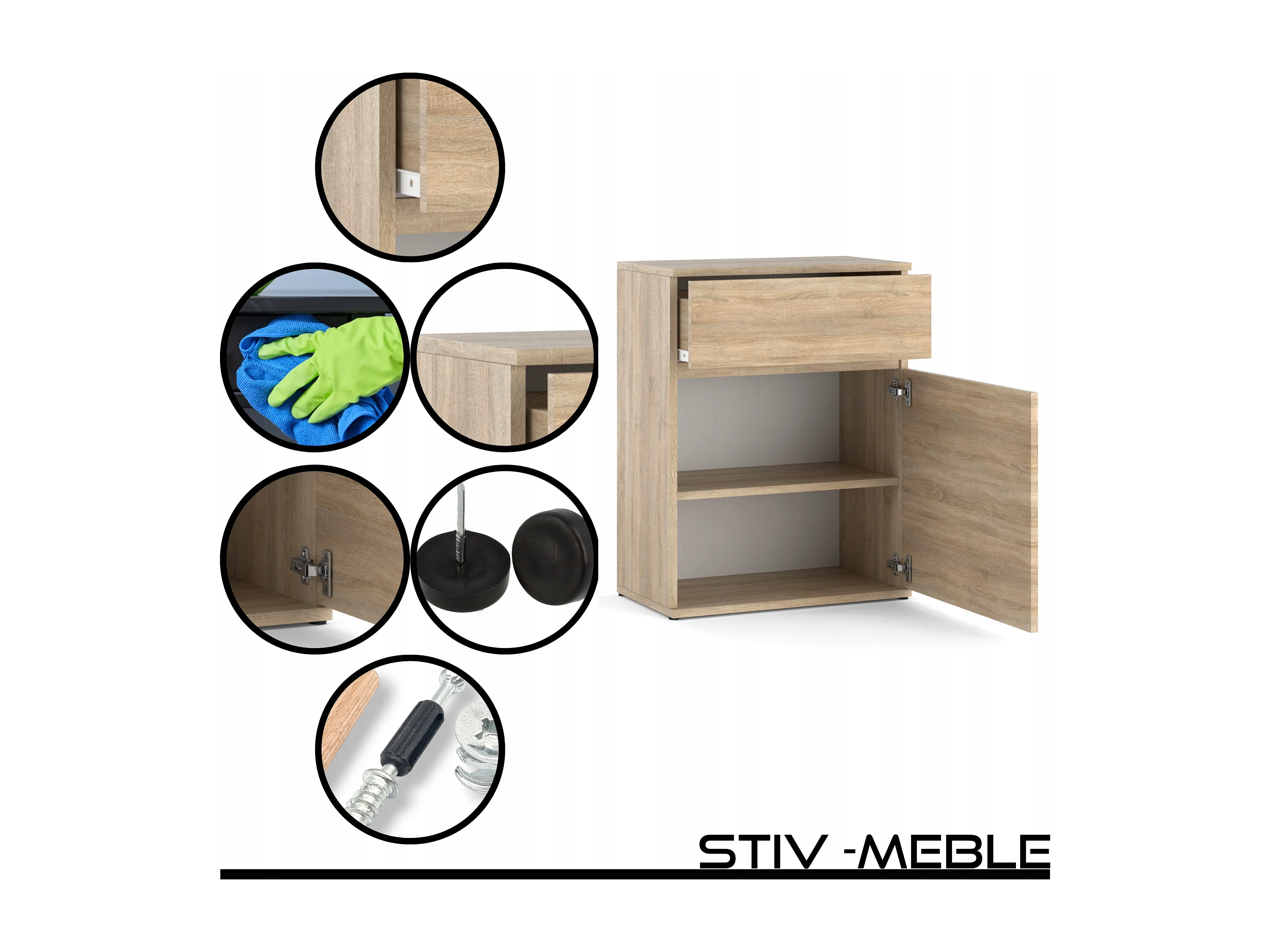 Sonoma Eichenkommode braun 60 cm, modernes griffloses Design, praktischer Stauraum für Wohnzimmer und Schlafzimmer