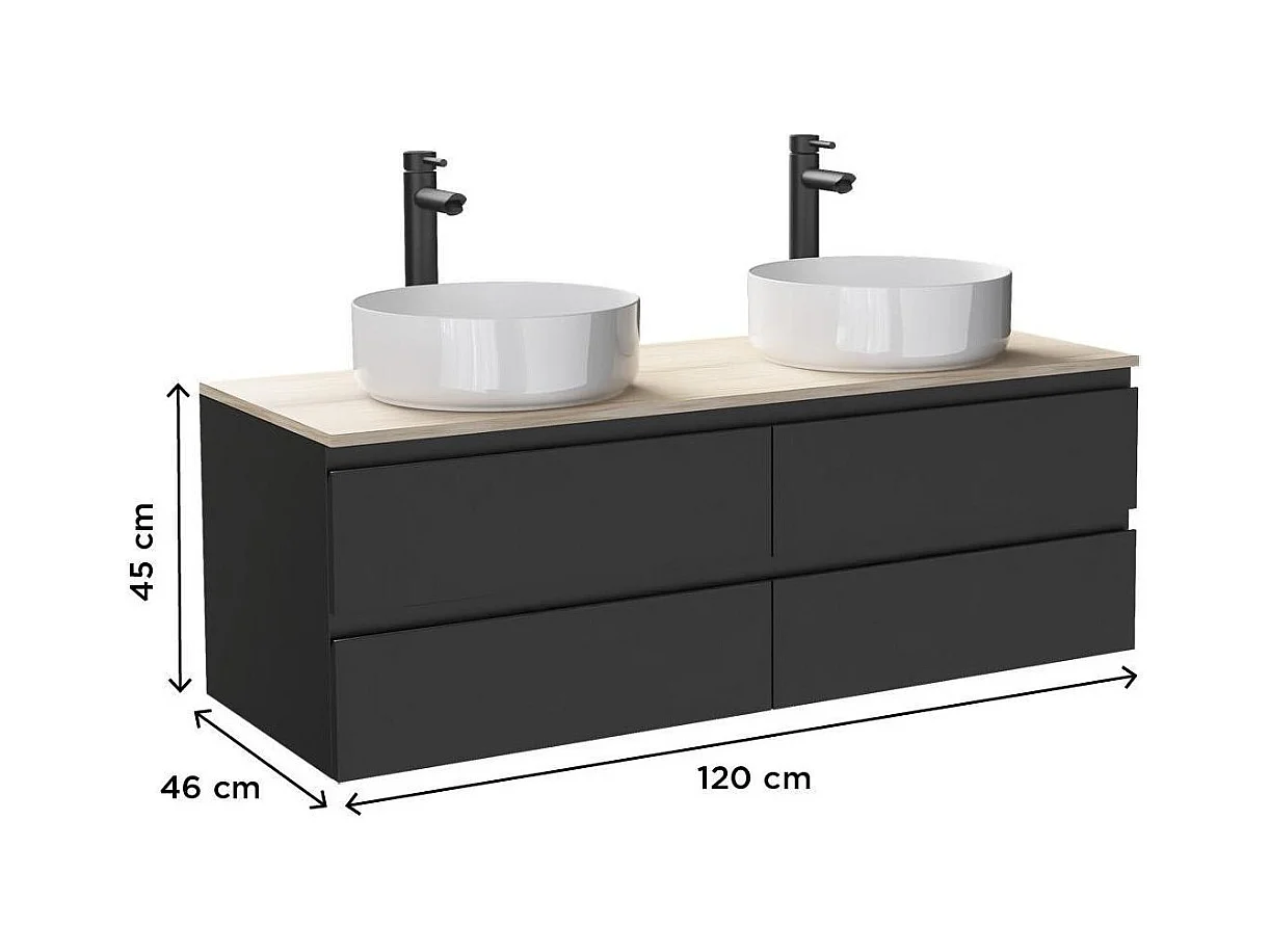 SORRENTO 120 cm Wand-Doppelwaschbecken