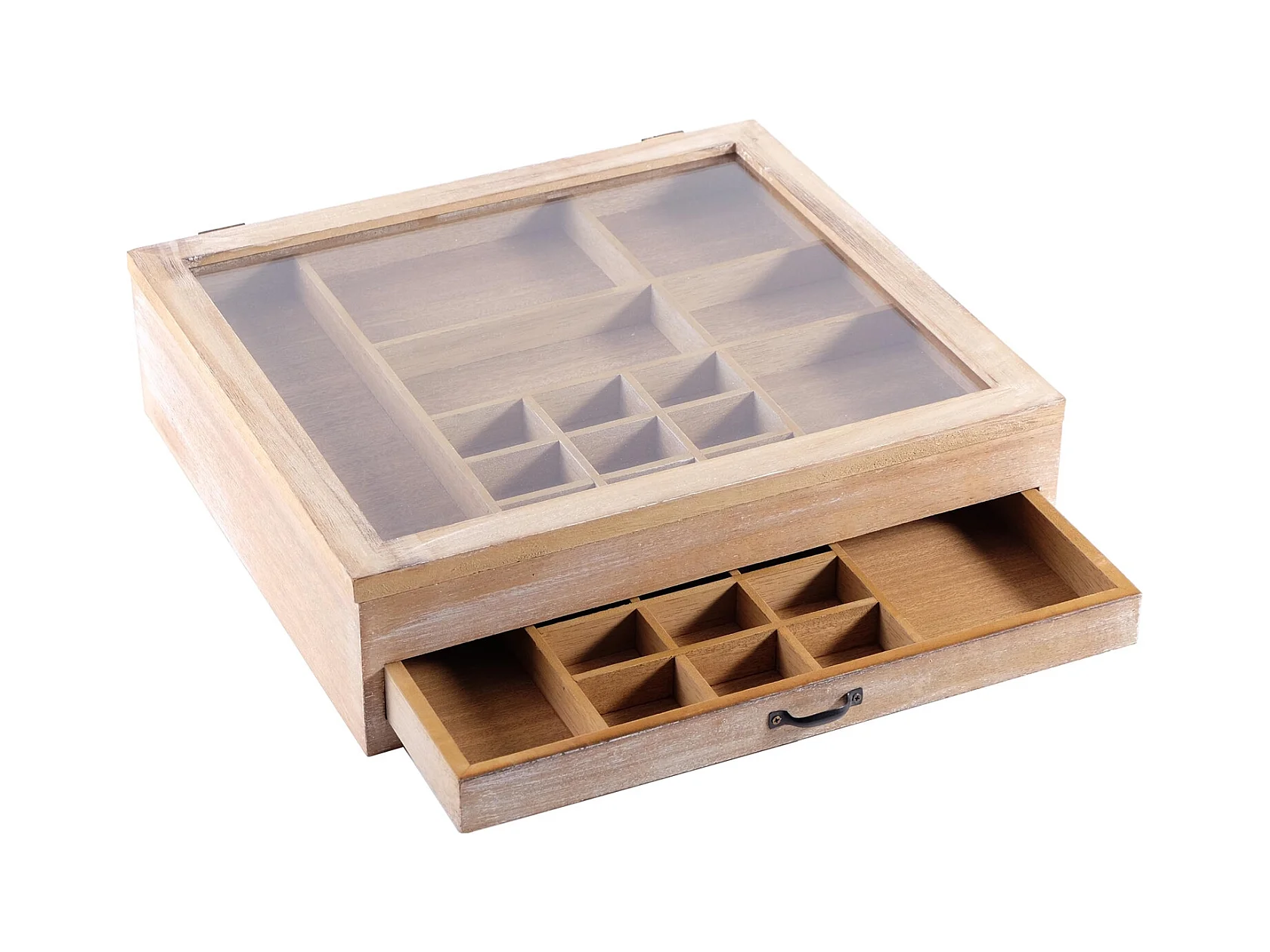SORTIERKASTEN Sorta Holz, 2 Ebenen, für Schmuck, kleine Teile naturfarben
