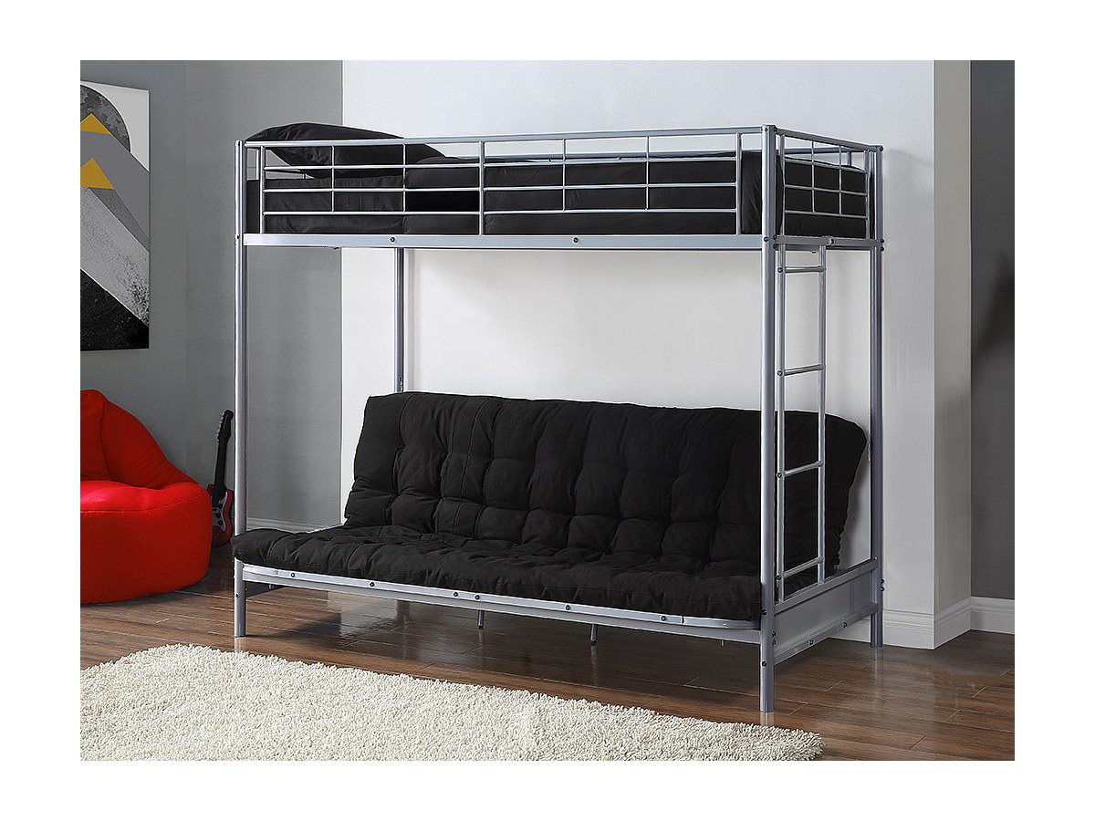 Hochbett mit Schlafsofa MODULO IV - 90 x 190 cm - Metall - Silberfarben + Futonmatratze 135 x 190 cm