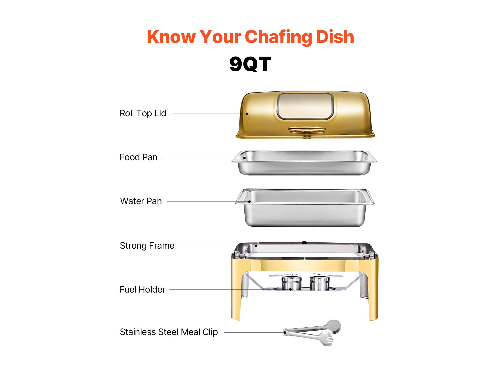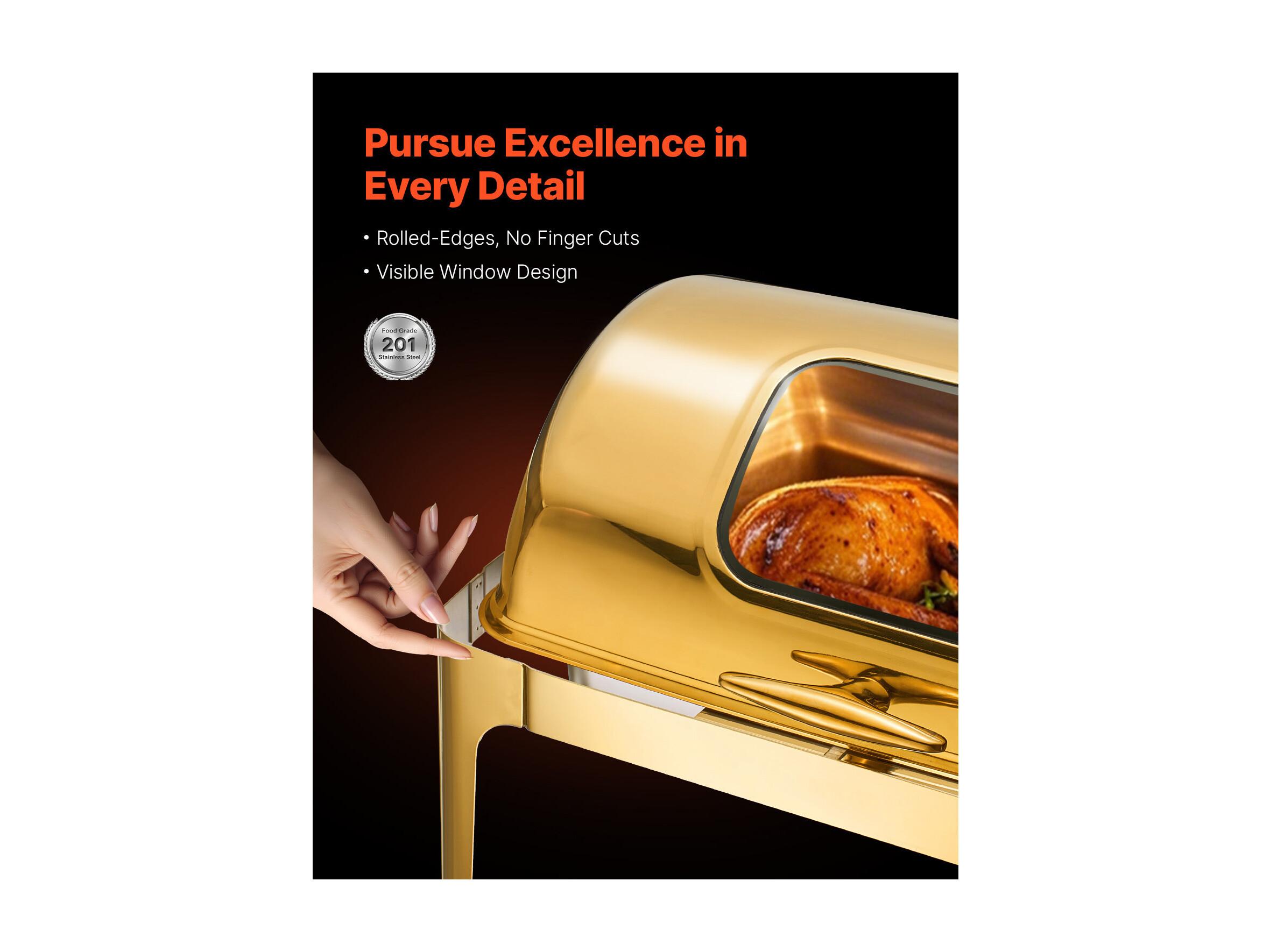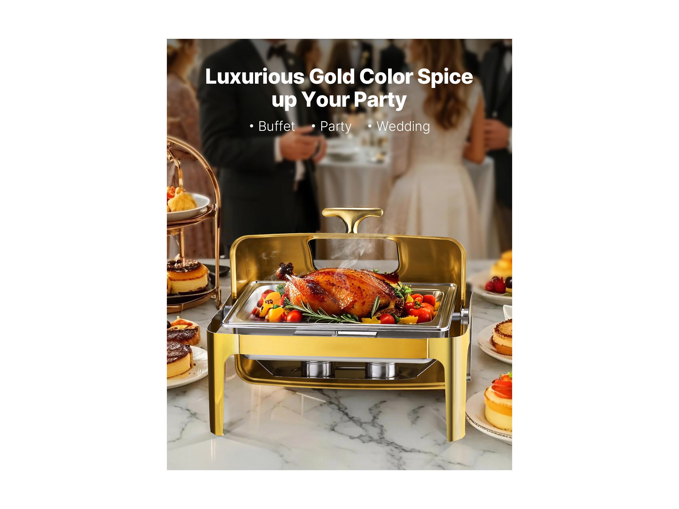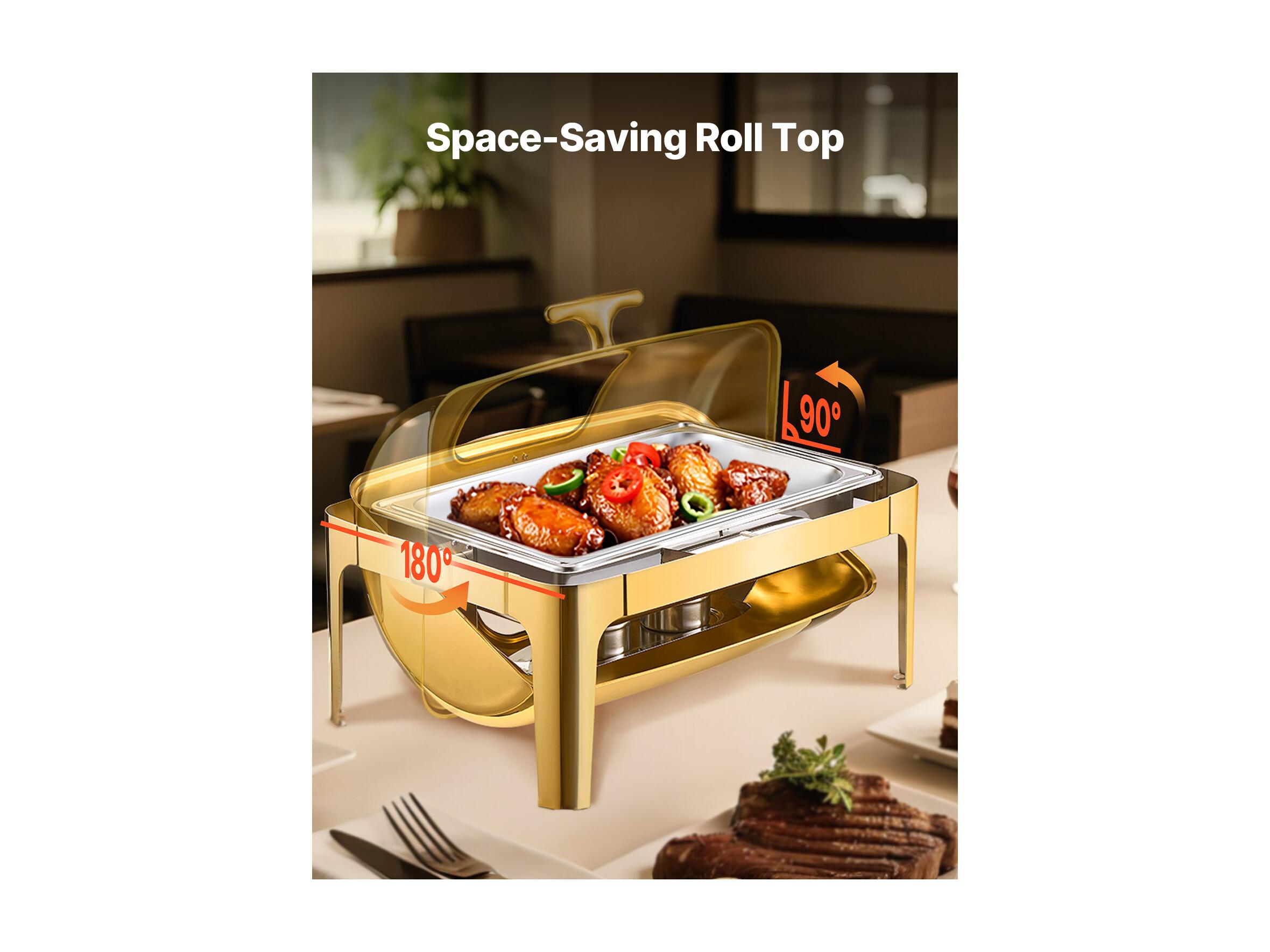 Speisenwärmer SucceBuy 4-teiliges, Rechteckiges Buffet-Chafing-Dish-Set (8.5 L) mit Rolldeckel und 9 Quart Edelstahl-Rolldeckel mit Großer Pfanne