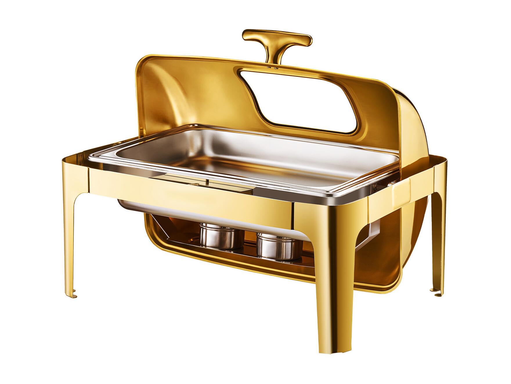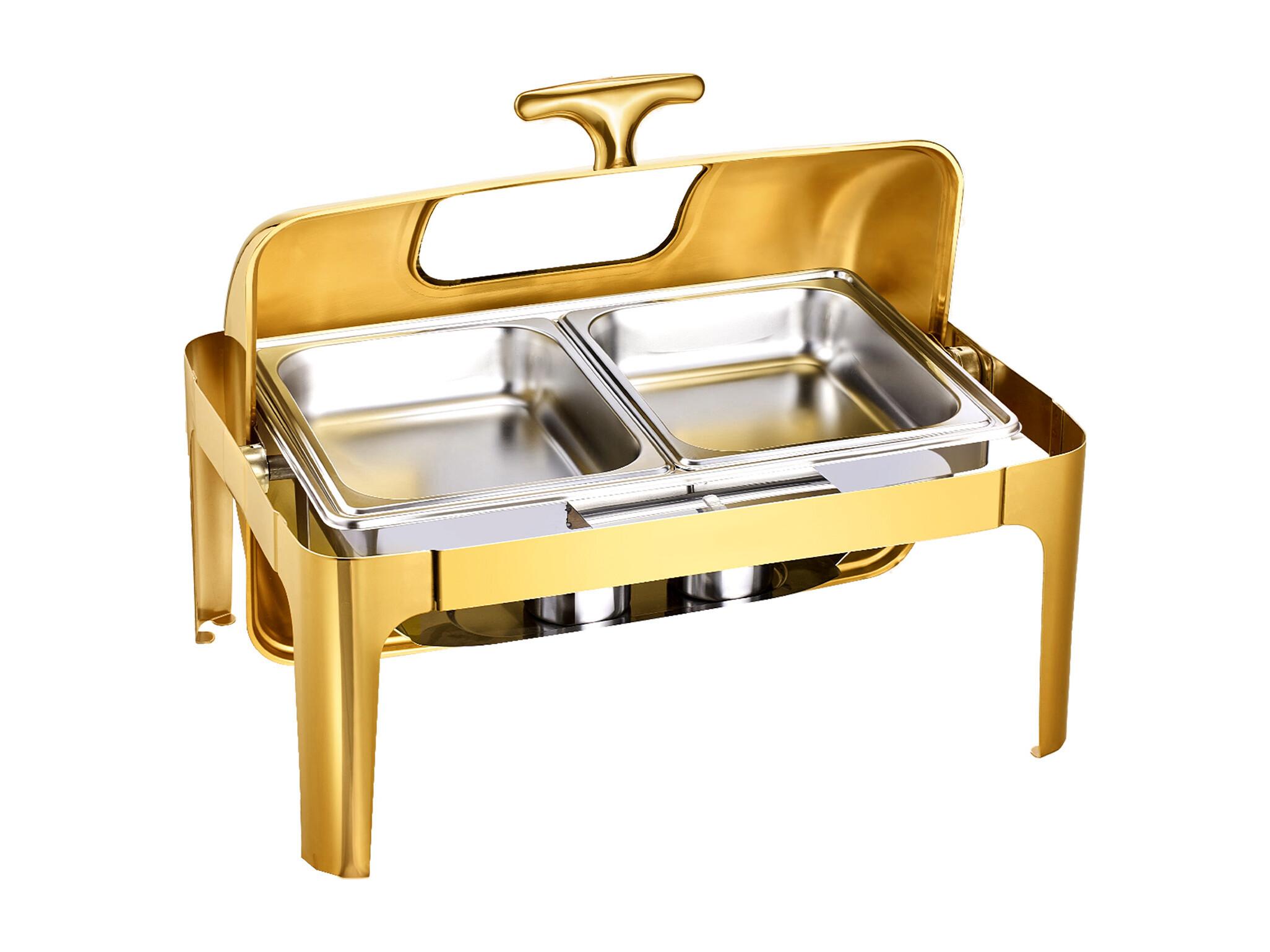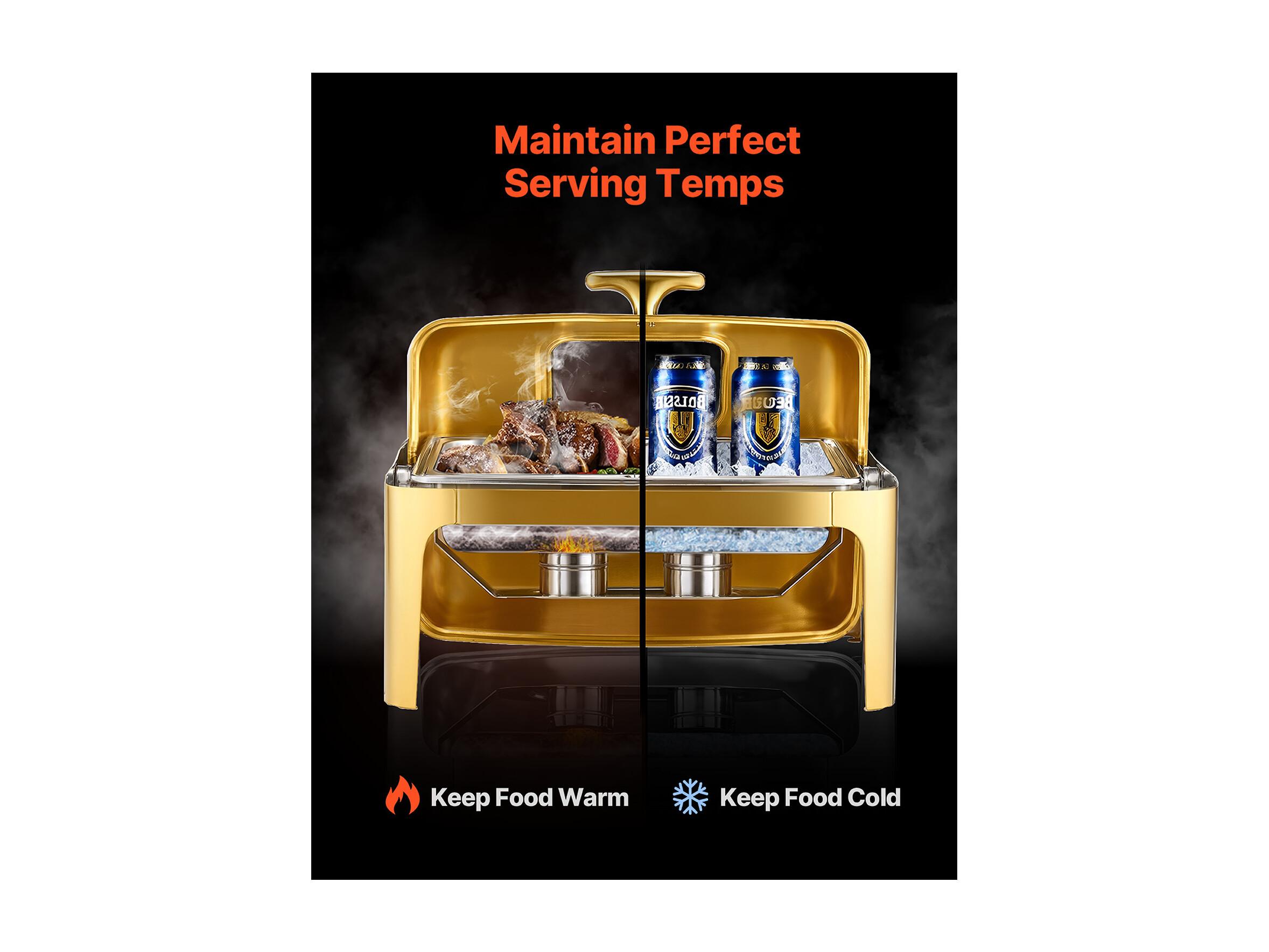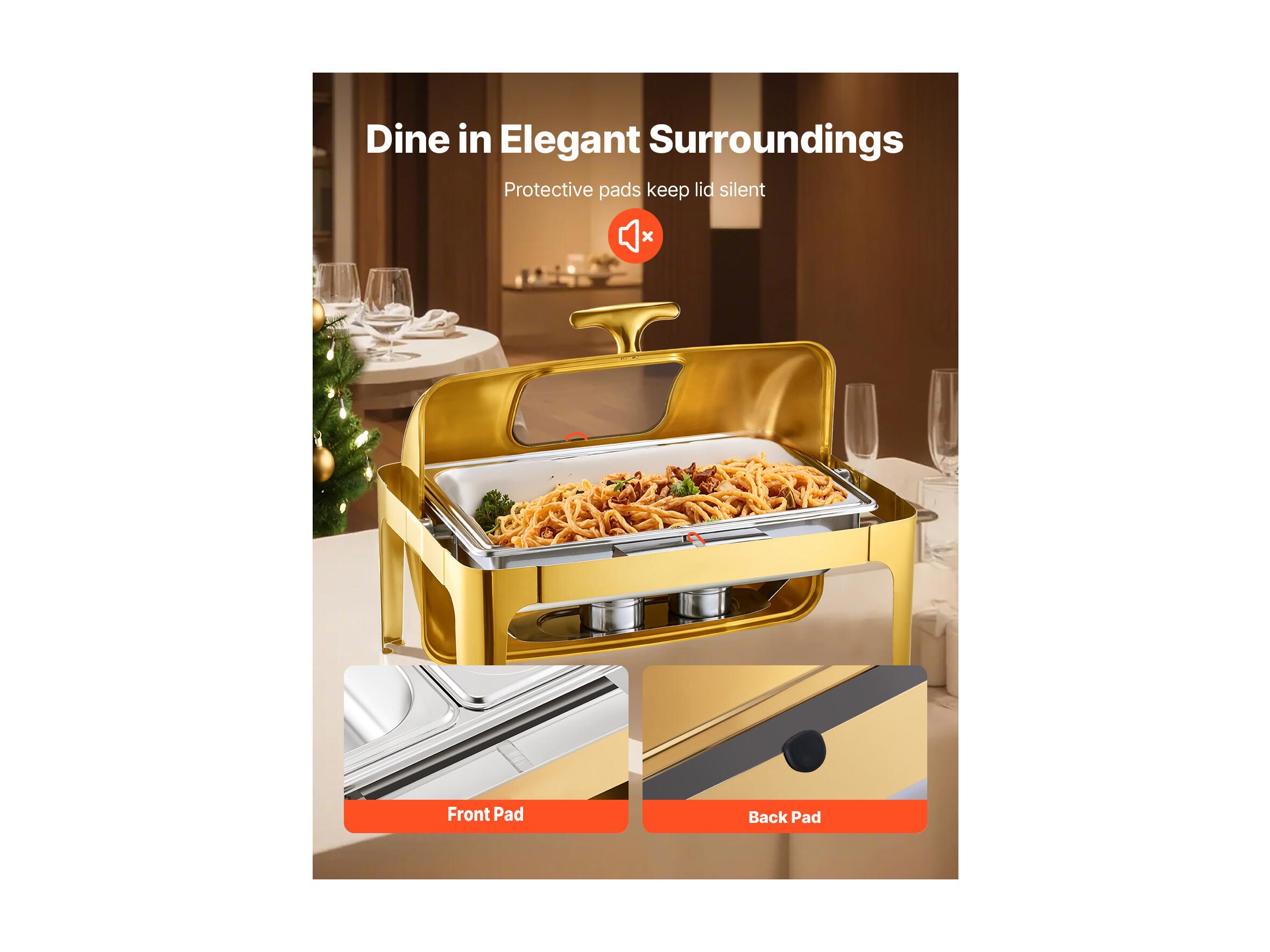 Speisenwärmer SucceBuy 4-teiliges, Rechteckiges Buffet-Chafing-Dish-Set (8.5 L) mit Rolldeckel und 9 Quart Edelstahl-Rolldeckel mit Großer Pfanne