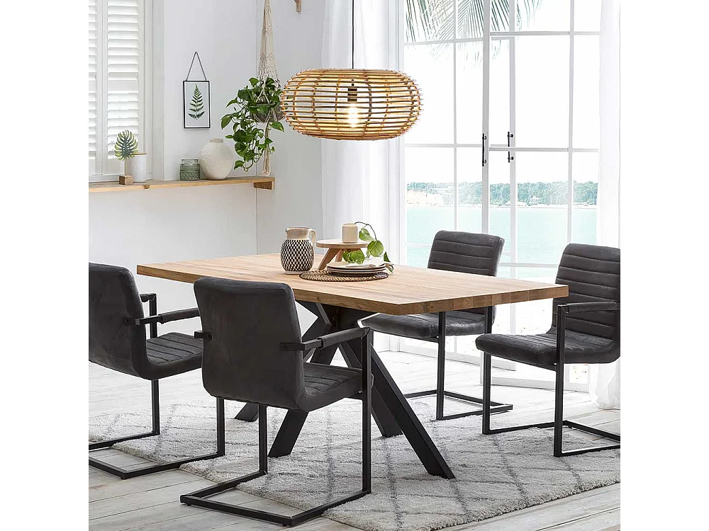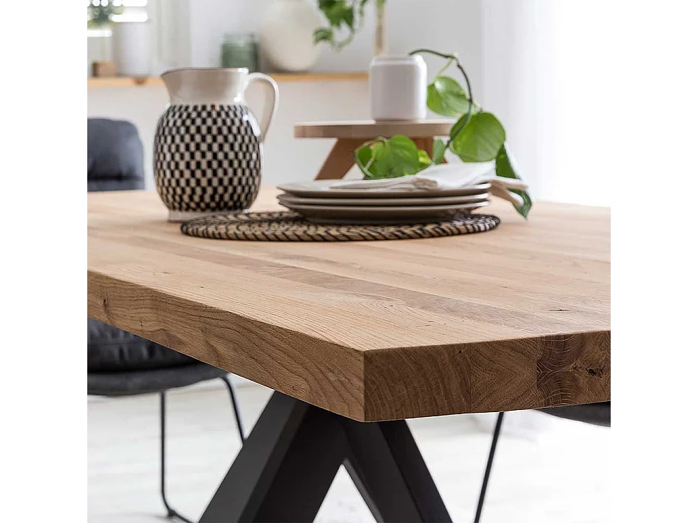 Spidergestell Tisch aus Wildeiche Massivholz Metall