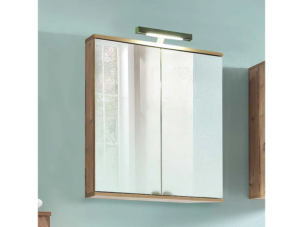 Spiegel Badschrank im Dekor Fichte Grau LED Beleuchtung
