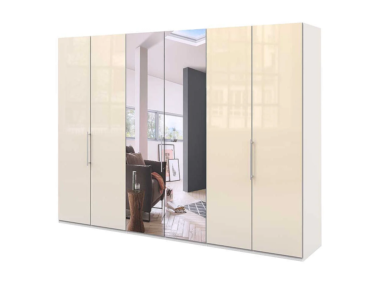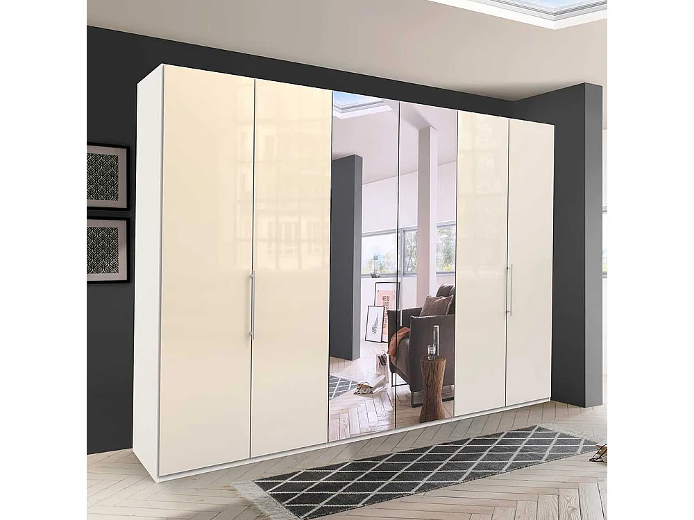 Spiegel Kleiderschrank mit Falttüren Cremefarben