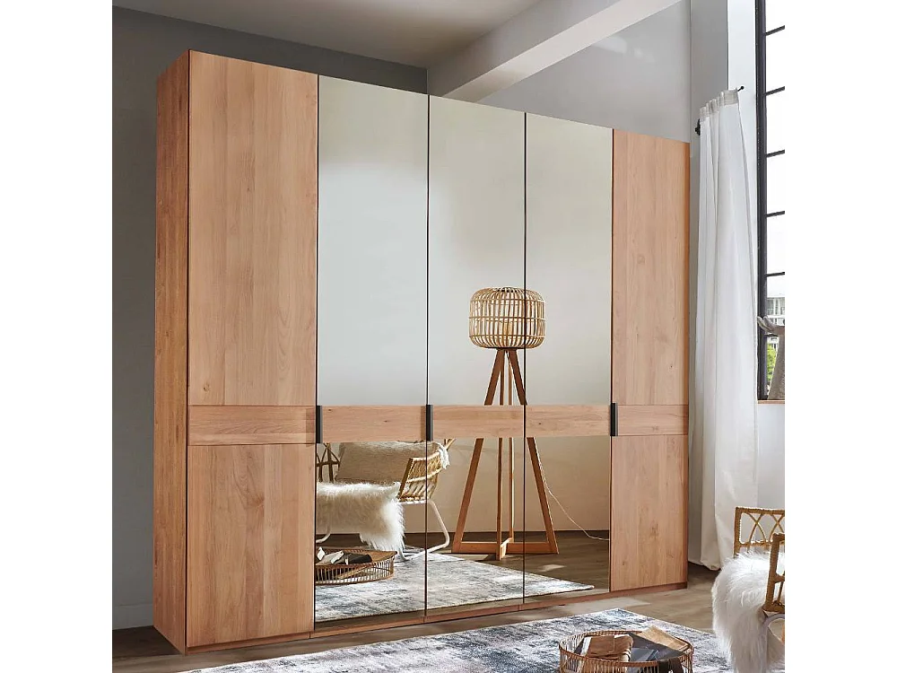 Spiegelkleiderschrank Holzkleiderschrank mit Drehtüren auf Sockel