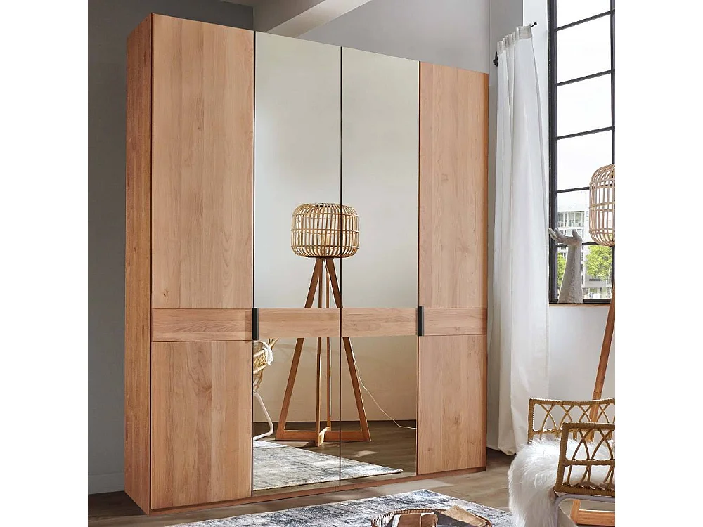 Spiegelschrank Schlafzimmerschrank in Erlefarben mit Metallgriffen