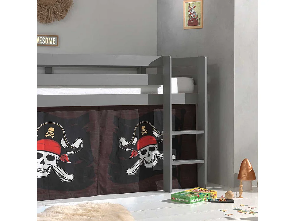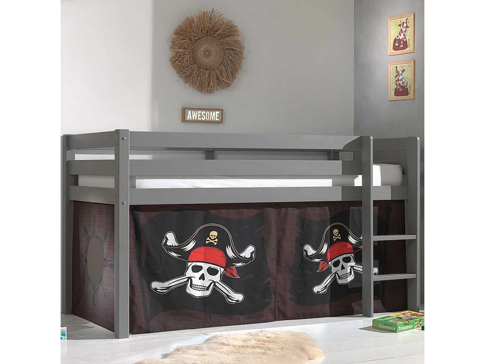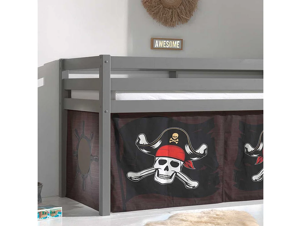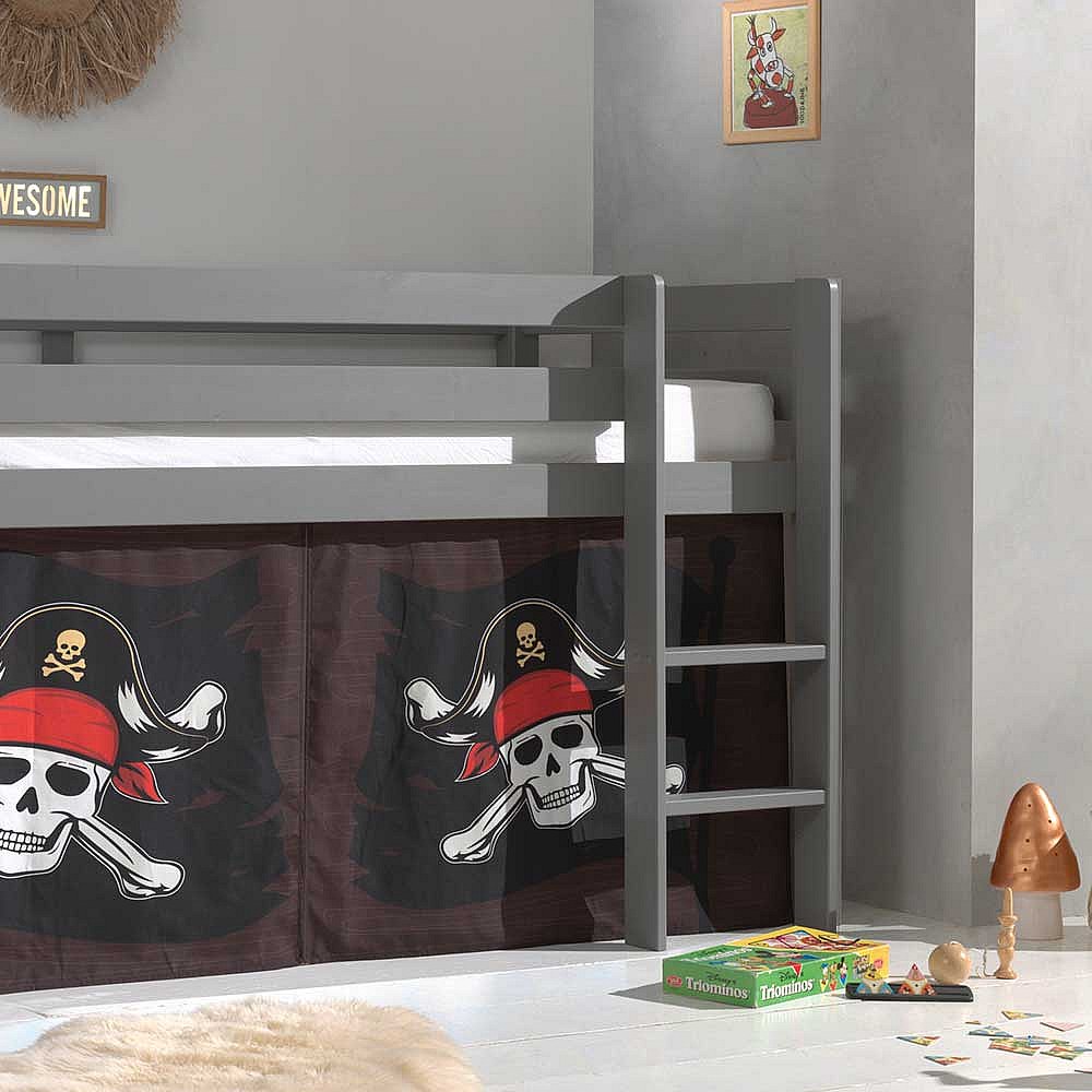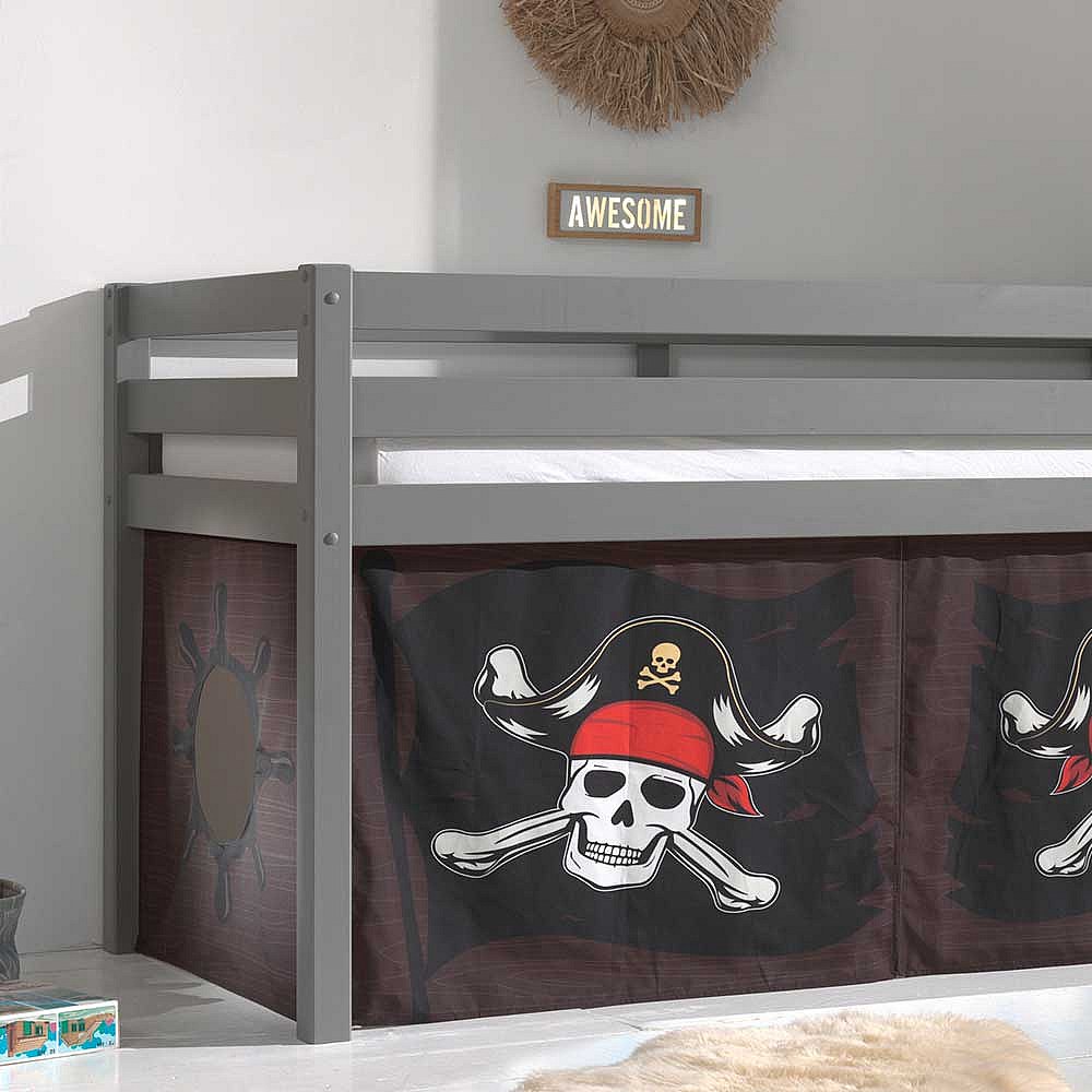 Spielbett Pirat aus Kiefer Massivholz Grau