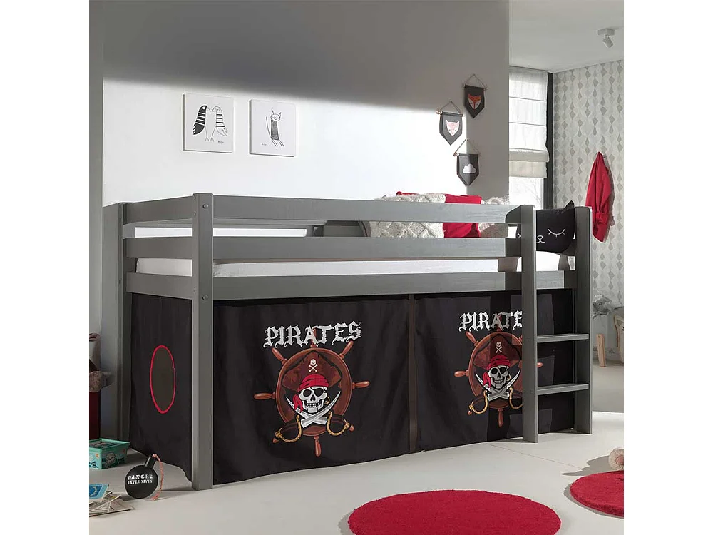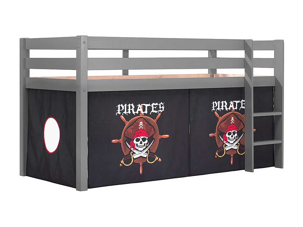 Spielbett Pirat in Grau und Schwarz Vorhang