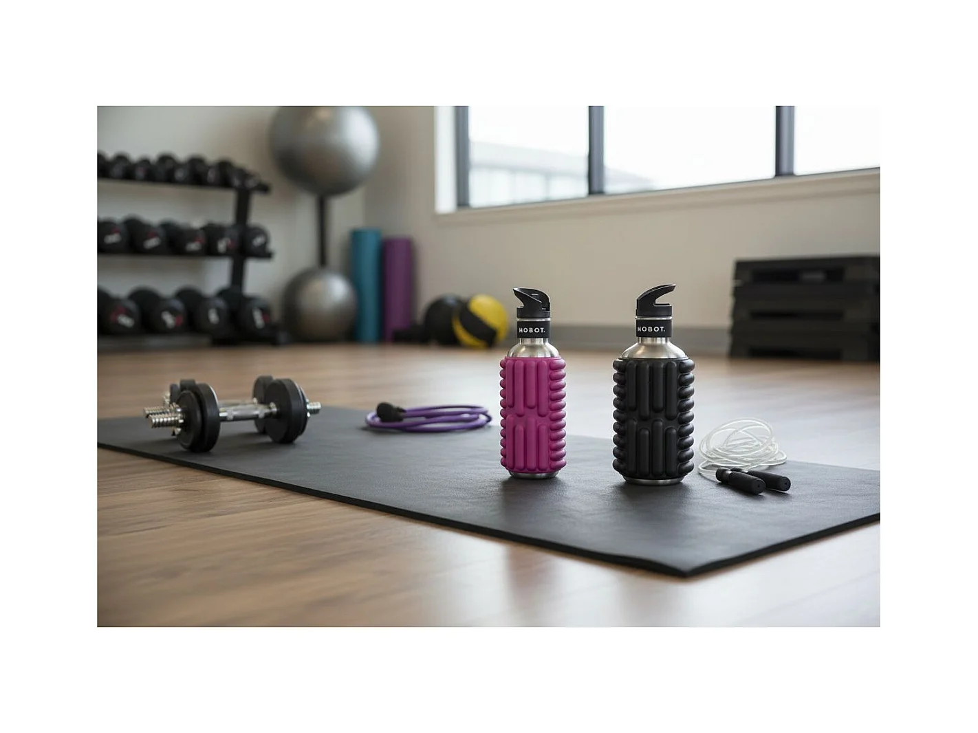 Sportflasche - Mobot - Funktion 2 in 1 Massageroller - Schwarz