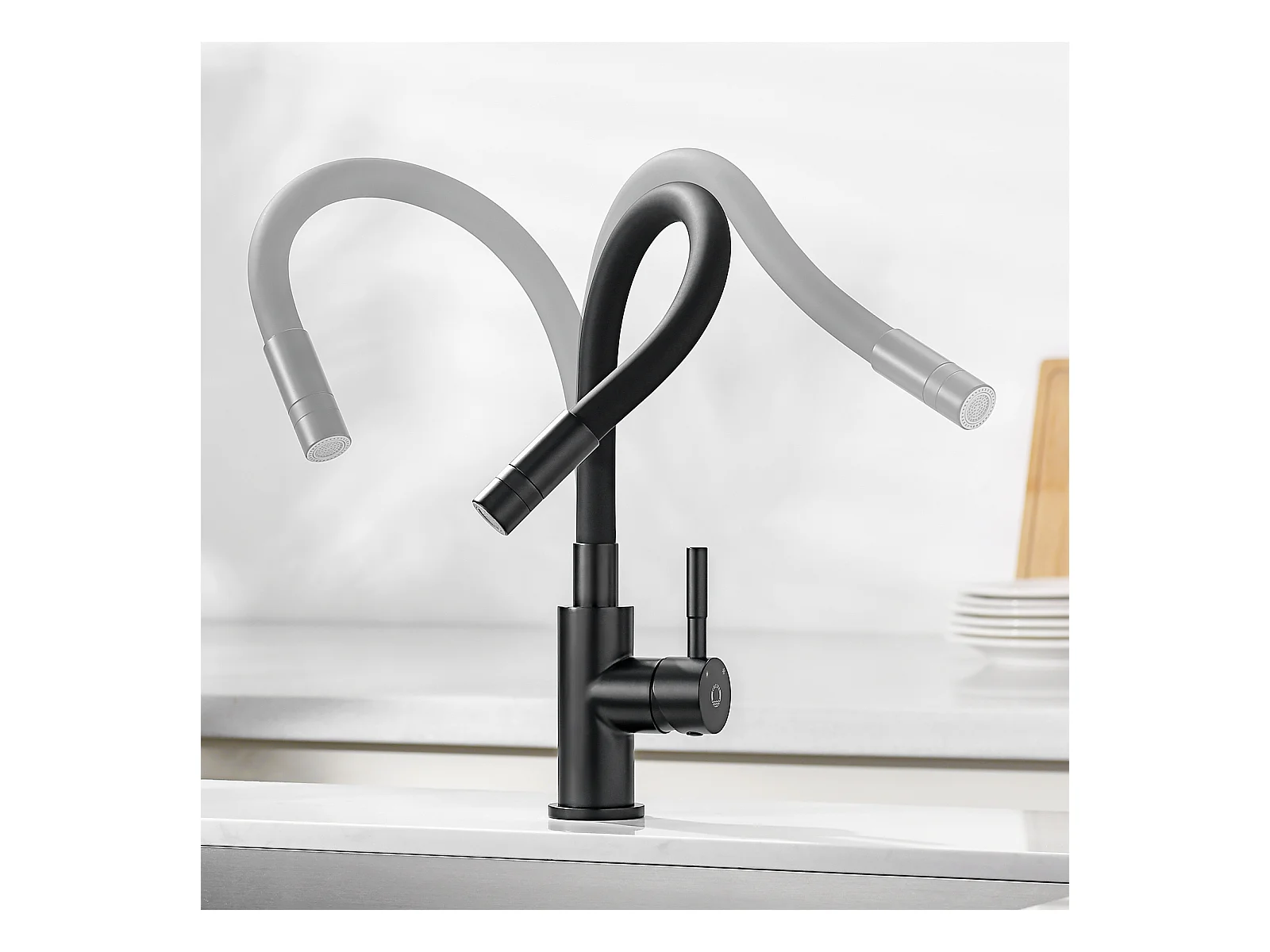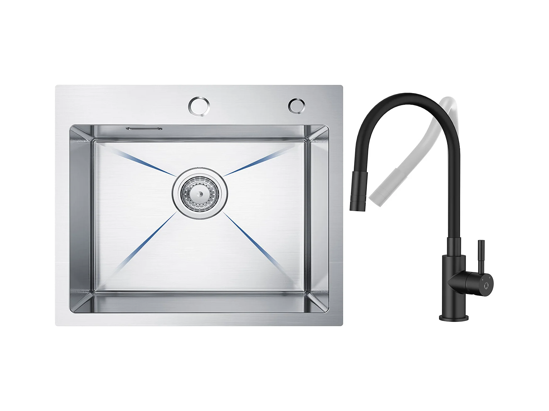 Edelstahlspüle Küchenspüle 1 Becken 50 × 45 cm Gebürstete Küchenspüle + Flexible Küchenmischbatterie, 2 Düsenarten Schwarzer ausziehbarer Wasserhahn