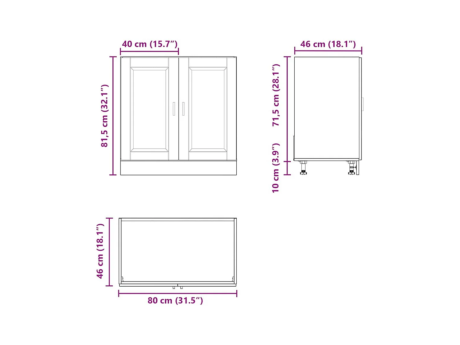 Spülenunterschrank Porto Grau Sonoma 80x46x81,5cm Holzwerkstoff