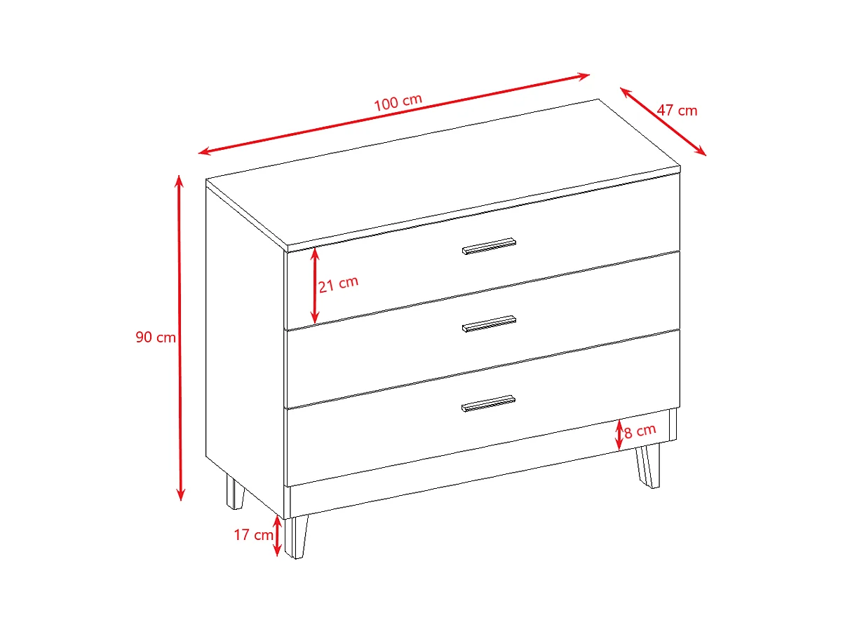 Kommode mit 3 Schubladen Kocot Kids Kubi - Grau