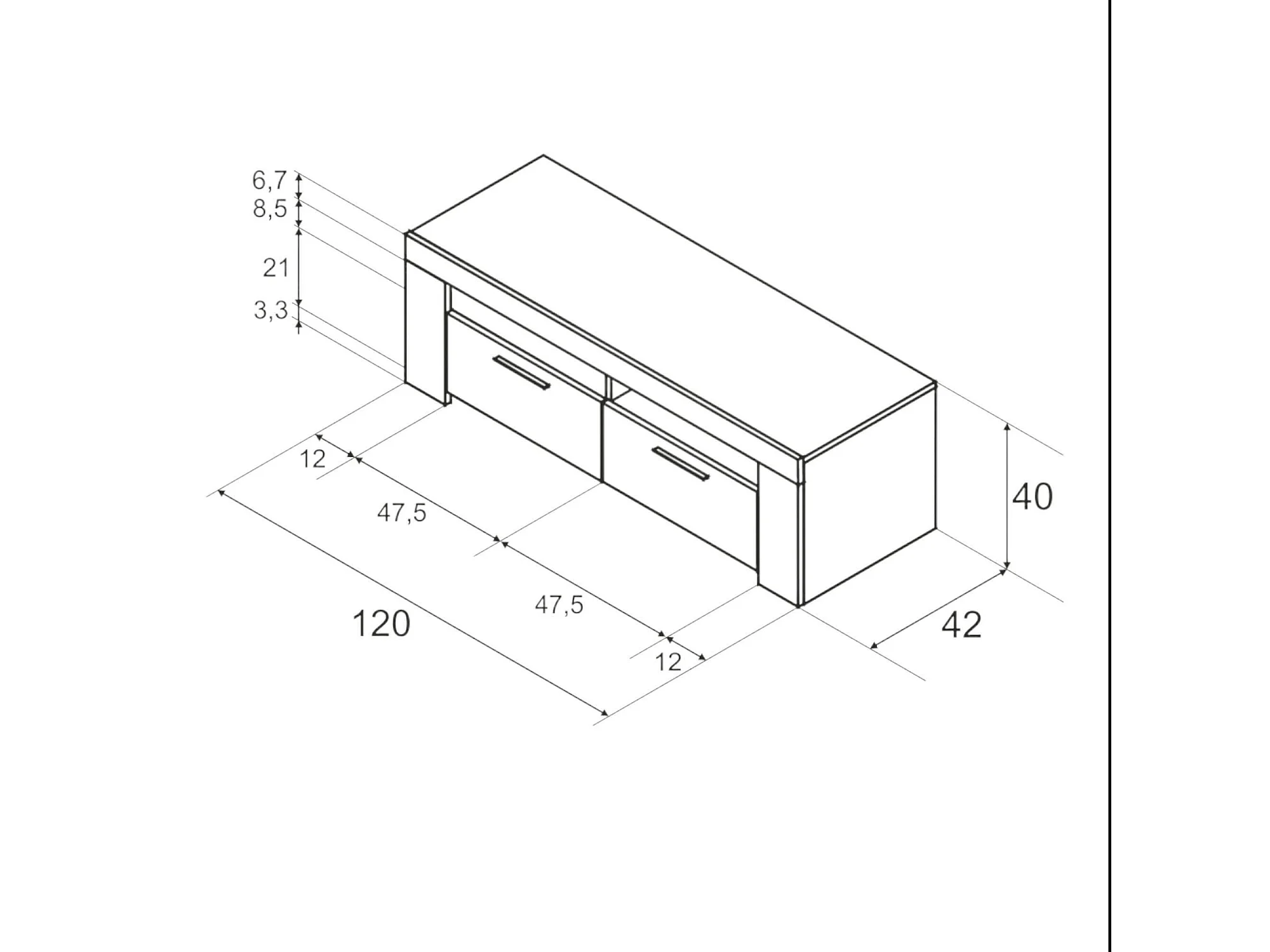 Stamford TV-Ständer, Sideboard für Wohnzimmerfernseher, 2-türiger TV-Ständer, niedriges Sideboard für Wohnzimmer, 120x42h40 cm, Weiß und Zement